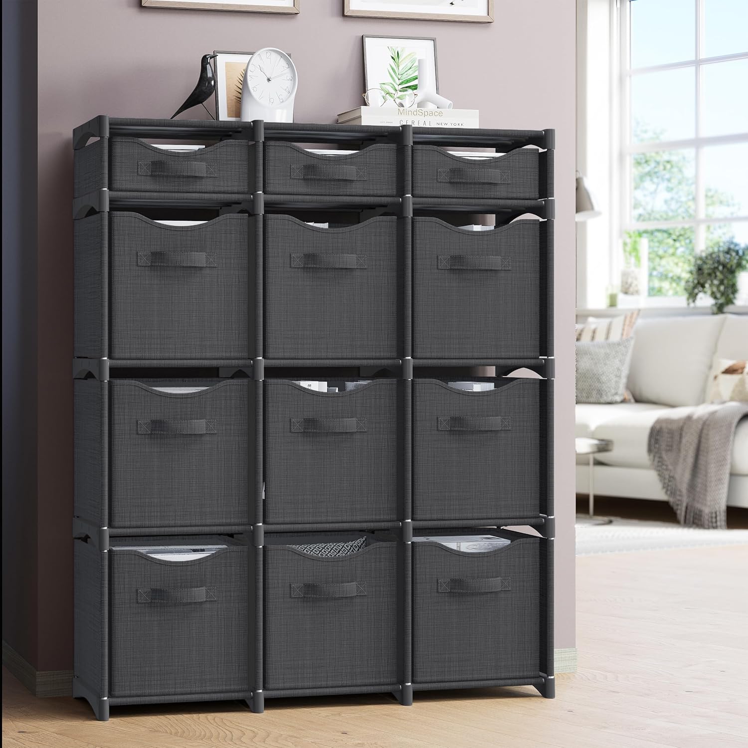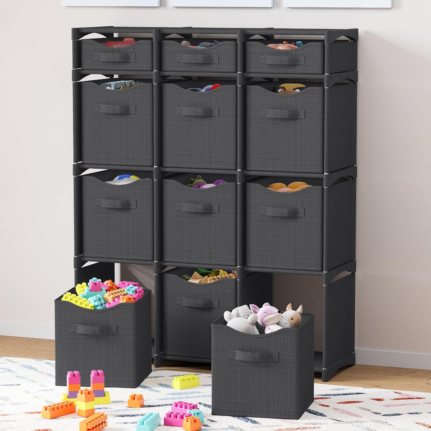 12 Cube Closet Organizers And Storage | Includes All Storage Cube Bins | Easy To Assemble Closet Storage Unit With Drawers | Room Organizer For Clothes, Baby Closet Bedroom, Playroom, Dorm (Dark Grey)