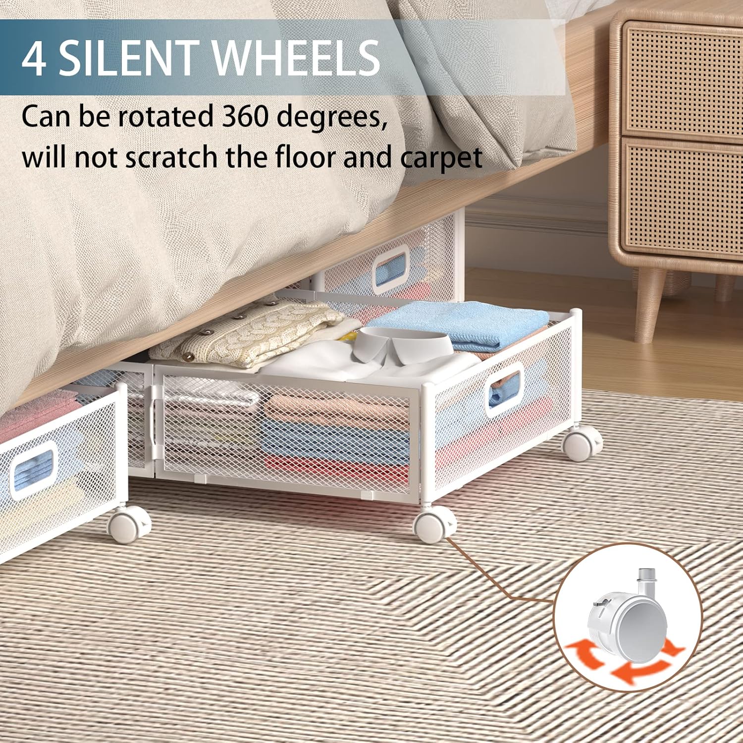 - WELL BUILT AND NON-DEFORMING: The underbed storage containers are made from high-quality metal material, compared with traditional fragile plastics and non-woven materials that are easily deformed and torn, our under bed storage drawer on wheels is more durable and has better load-bearing capacity, which will meet your long term storage needs.