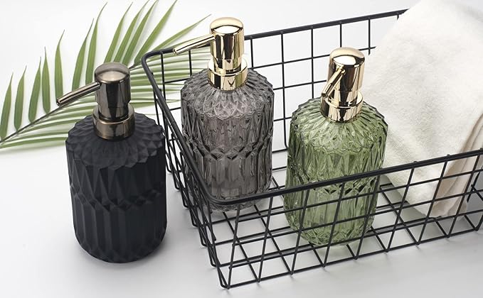 - 【Elegant and Vintage Design】: A Vintage and elegant soap and lotion dispenser with diamond cut surface for a comfortable feel and effective non-slip. The pump bottle works very smoothly and does not spray soap like other dispensers.