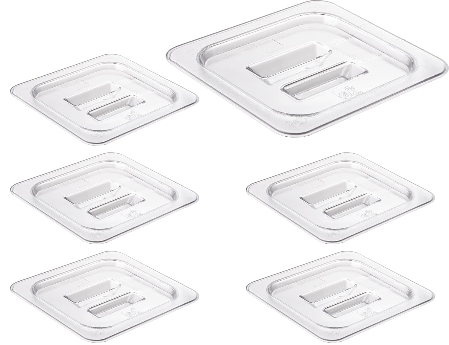 CURTA 6 Pack Food Pan Lids, 1/6 Size Polycarbonate Cover with Handle, Plastic Clear