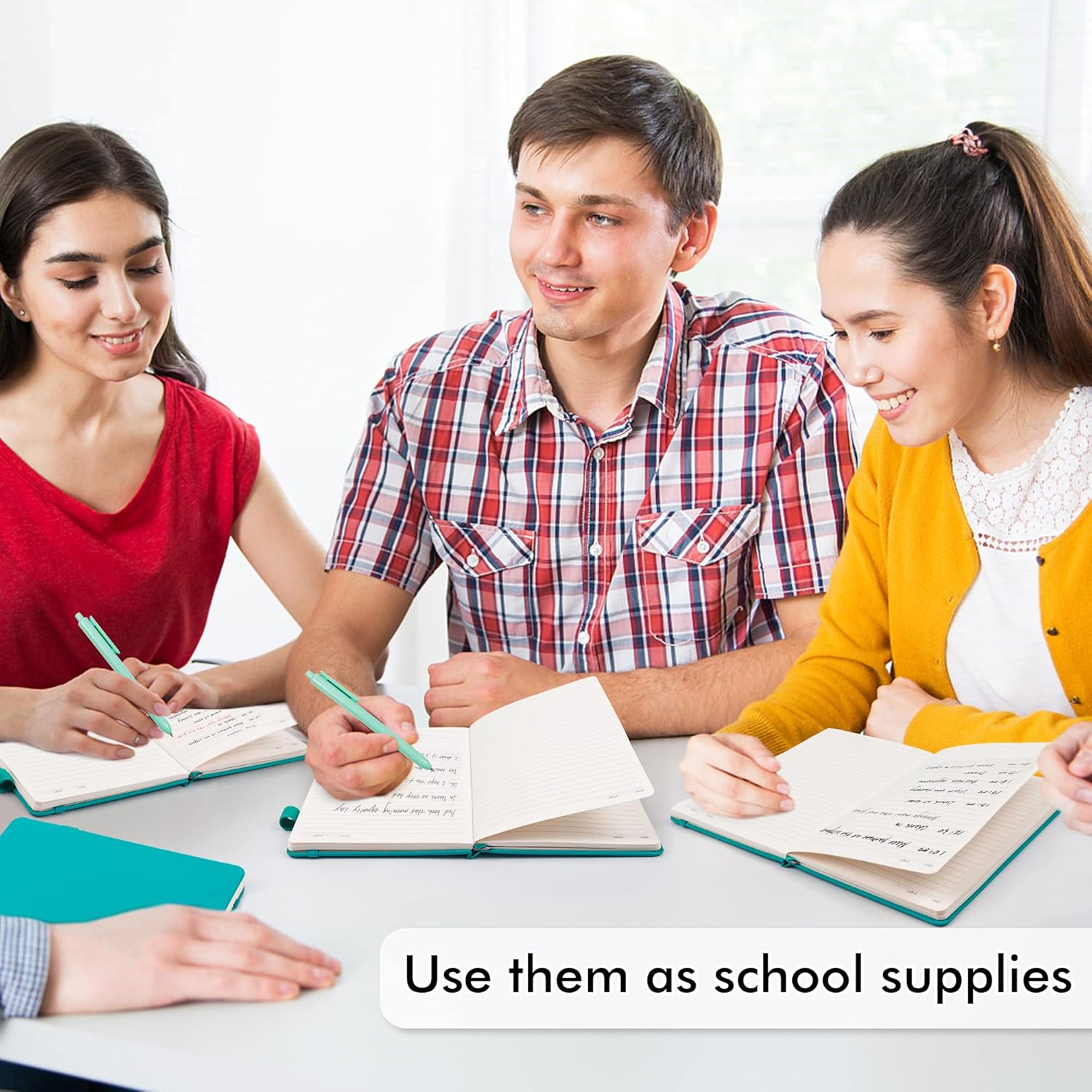 - Feela 18 Pack Classic Ruled Notebooks contains 18 emerald ruled sturdy cover notebooks and 18 Black Retractable Pens. Each of the notebooks measures 8.3” x 5.1”, which is perfect to carry and easily held by young girls and boys. These black cute pens are customized to be placed in the pen holder, which is pretty convenient.
