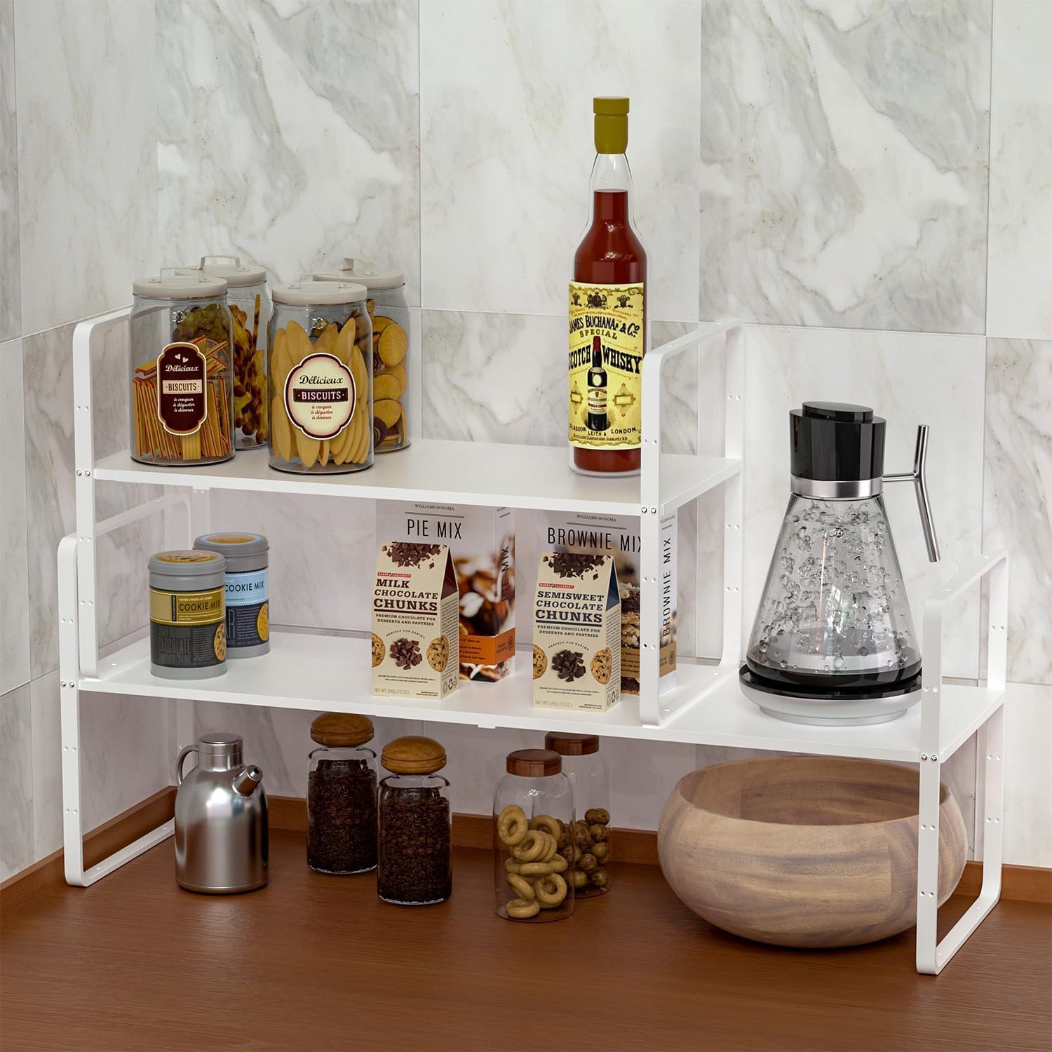 - 【Multi-purpose Use】 - Metal Expandable Stackable Cabinet shelves instantly create additional storage space. Perfect for any pantry or for placing dishware on, they can be placed inside a cabinet or on a kitchen countertop. It's ideal for organizing all your dishware, kitchen accessories, canned goods, and more!