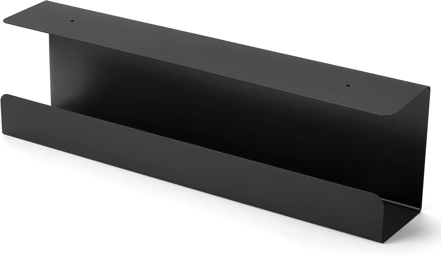 - Cable Management Tray Specifications: 16.5in long, 3in wide at the bottom, raised design 4.7in high. Sturdy and durable metal material, 1mm thick, twice the weight capacity of plastic trays (up to 11lb); no need to worry about deformation when heavy items are placed