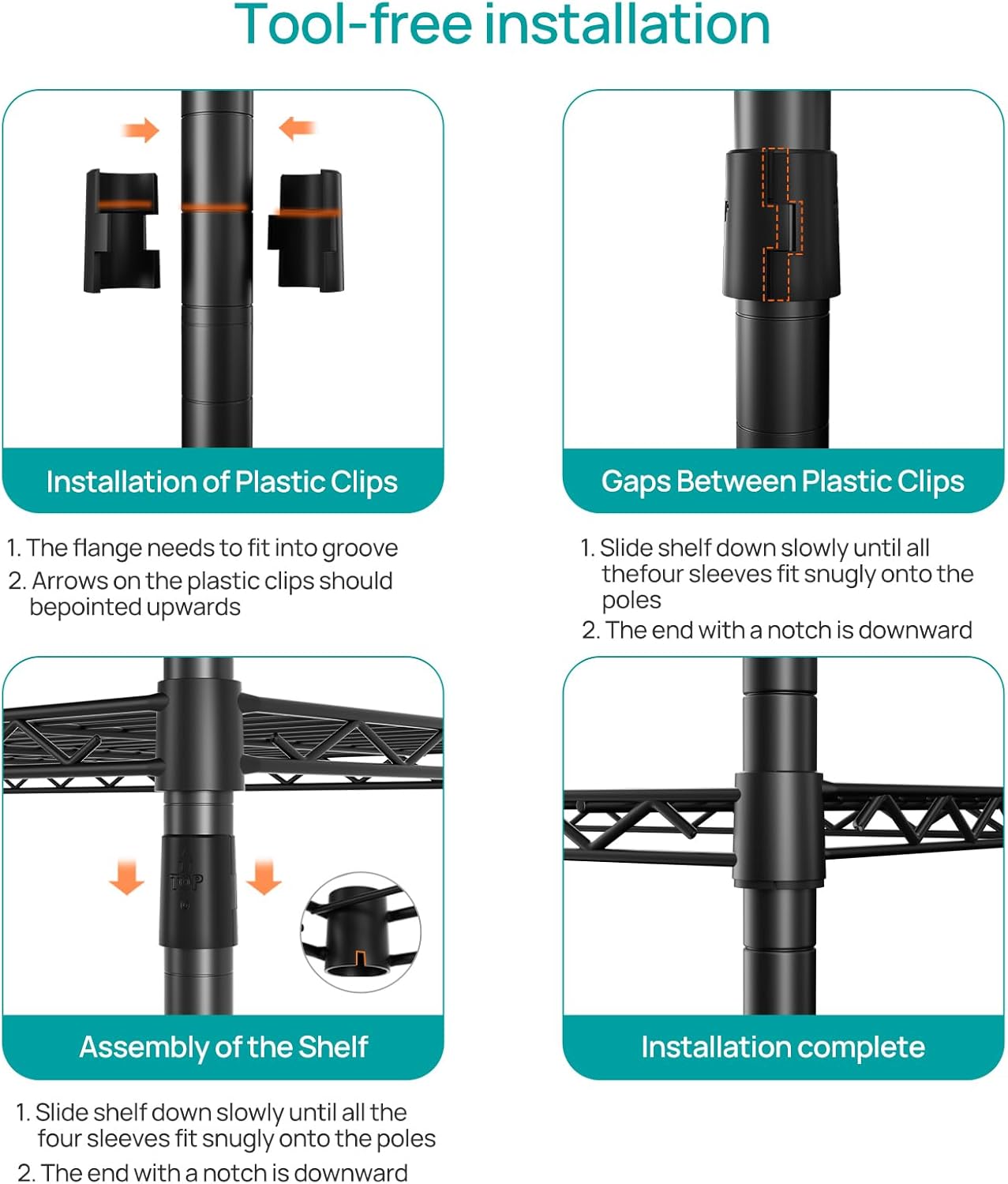 - Adjustable Height:Adjustable heavy duty 5 tier storage shelf,wire shelves adjustable in 1-inch increments