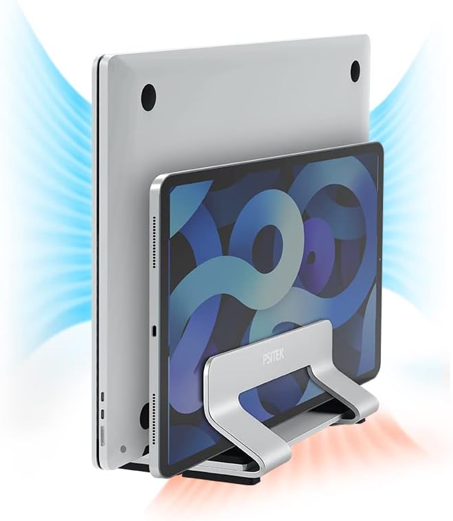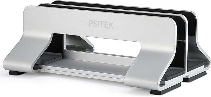 - Stylish and Practical: The Psitek Aluminum Vertical Laptop Stand Dock Holder's sleek and modern design adds a touch of style to your workspace. Perfect for use as a desk laptop holder, laptop dock stand, laptop holder stand, or vertical laptop stand.