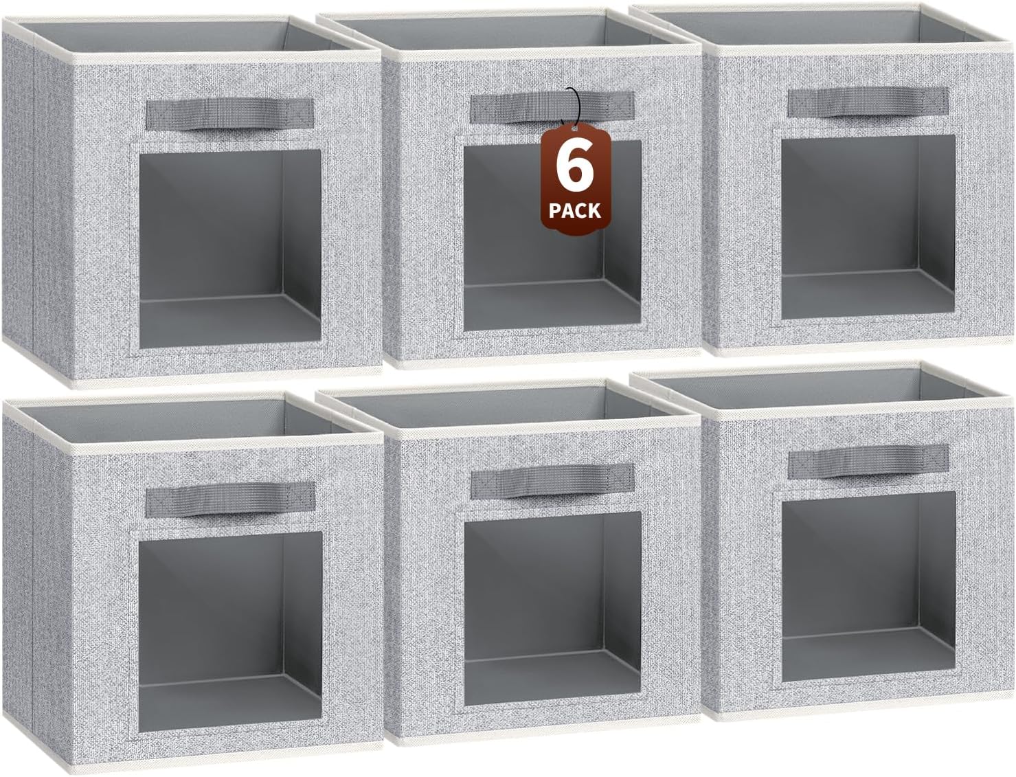 - [Transparent Window] All the storage cubes are designed with clear window in the front, easy to see what's inside so that you don't need to pull them down. The window design of fabric cube bins make it easy for to access inside items