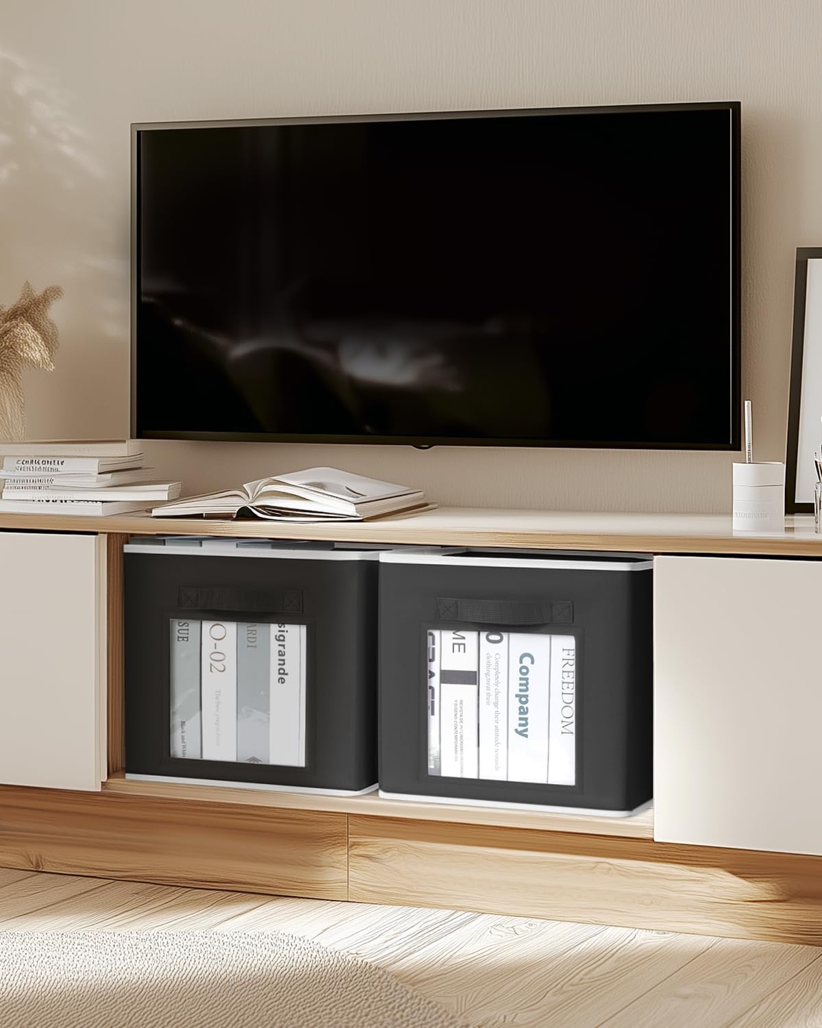 Cube Storage Bins - Fabric Shelves for Closet Organization, Foldable Storage Bins for Clothes, Decorative Storage Baskets with Window for Home, Set of 6, Black