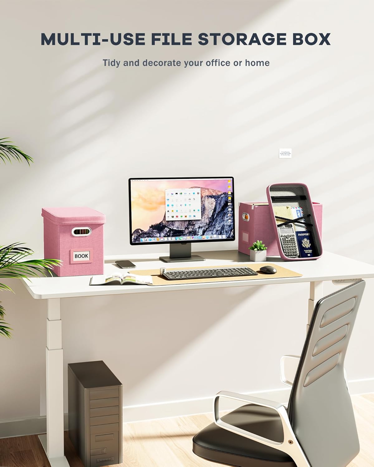 Oterri File Organizer Box with Lid, Hanging Filing File Box with Mesh Pocket, Document Organizer Box for Letter Files, Portable Storage Box with Smooth Sliding Rail for Office&Home (1 PCS, Pink)
