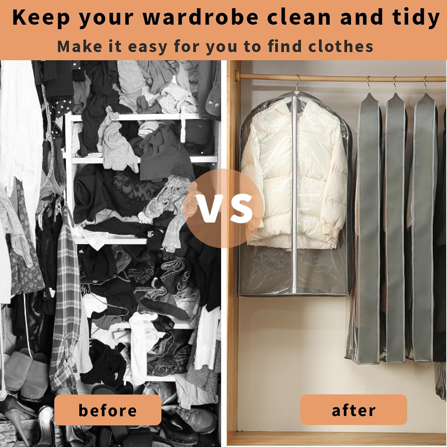 - 【GOOD HELPER FOR CLOSET ORGANIZER】: Use our these garment bags to keep your closet tidy and organized. Your clothes will be immediately well organized and no more folds. Also perfect for protecting items from getting ruined when travel.