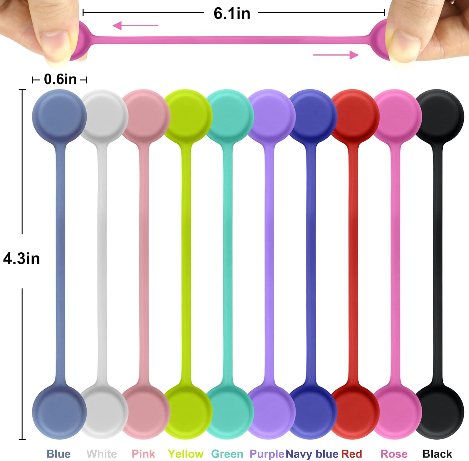 - 【Multi-color Selection】Our magnetic twist ties include 10 reusable silicone strong magnetic cable ties. Keep your cables tangle-free and easy to find with brightly colored tabs.