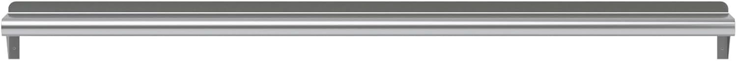 - 6 in. x 60 in. Stainless Steel Wall Shelf with 4 in. High Mounting Brackets. This heavy-duty multifunctional stainless wall shelf is made with 18 gauge stainless steel and can hold up to 185 Lbs of weight. The design features a 1 in. backsplash and bullnose edge. It's made with durable welded corners and support brackets.
