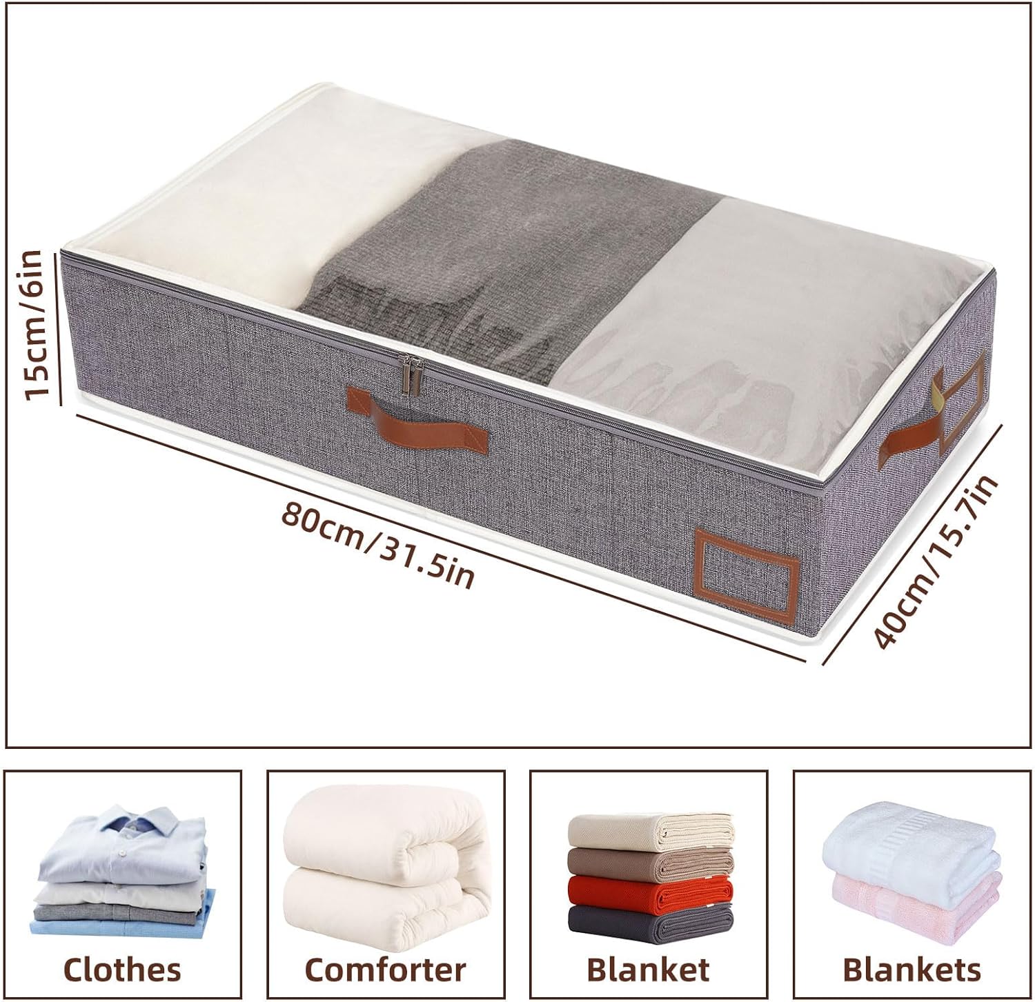 Yawinhe Under Bed Storage Containers, 2 Pack, Bin with Lids, Collapsible Closet Organizers, with Sorting Card Slot and 4 Leather Handles, for Blanket, Bedding, 31.5''Lx15.7''Wx6''H, Grey