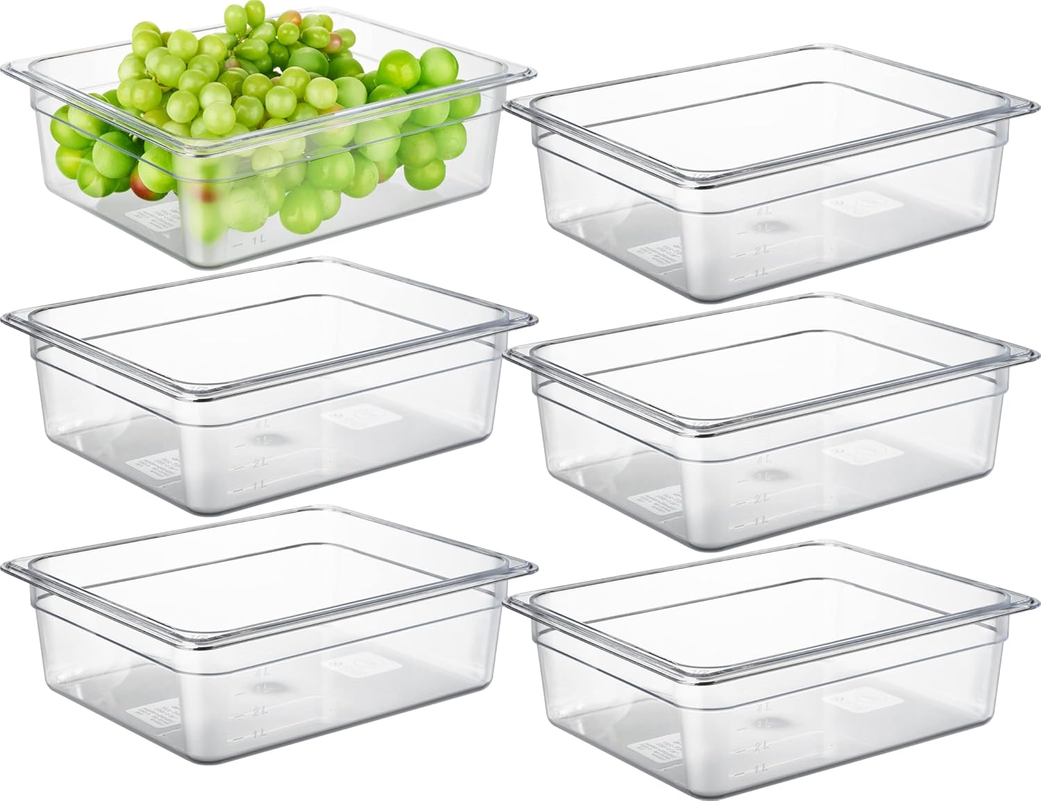 - 6-PACK SET - The set includes six 1/2 size 4 inch deep CURTA food pans measure approximately 12 3/4" (325mm) x 10 1/2 " (265mm) and holds 6.13 quarts.The food pans come in a convenient half-size, 4 inches deep, providing ample space to store and serve food items such as salads, fruits, and vegetables and making them ideal for use in restaurants, cafes, and other foodservice settings.