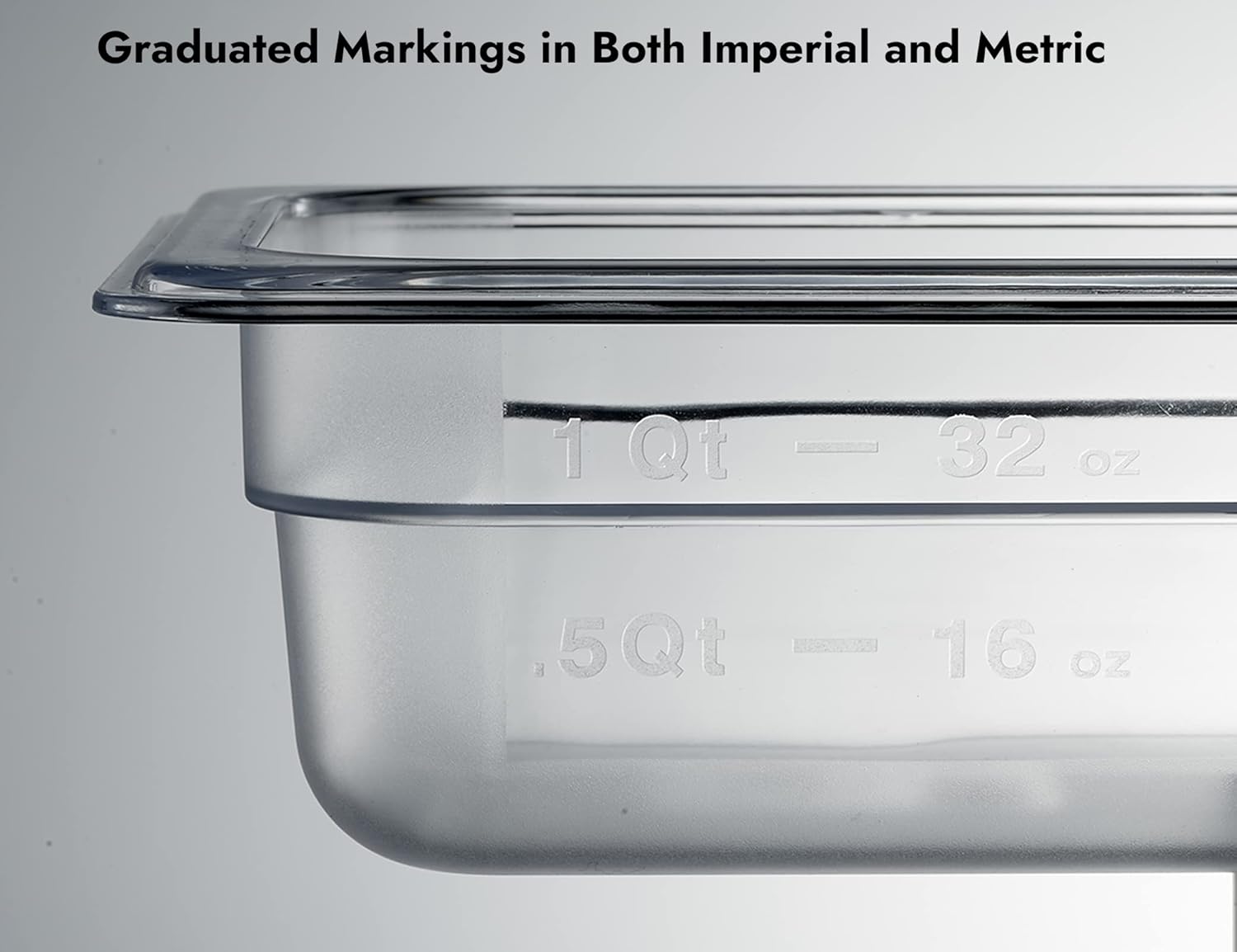 - Upgraded Model - This model also boasts a scratch resistant textured bottom and edges. And The crystal-clear construction provides excellent visibility, allowing you to easily identify the contents inside without having to open the lid. These food pans are temperature-resistant, meaning they can withstand extreme temperatures ranging from -40°F to 210°F.