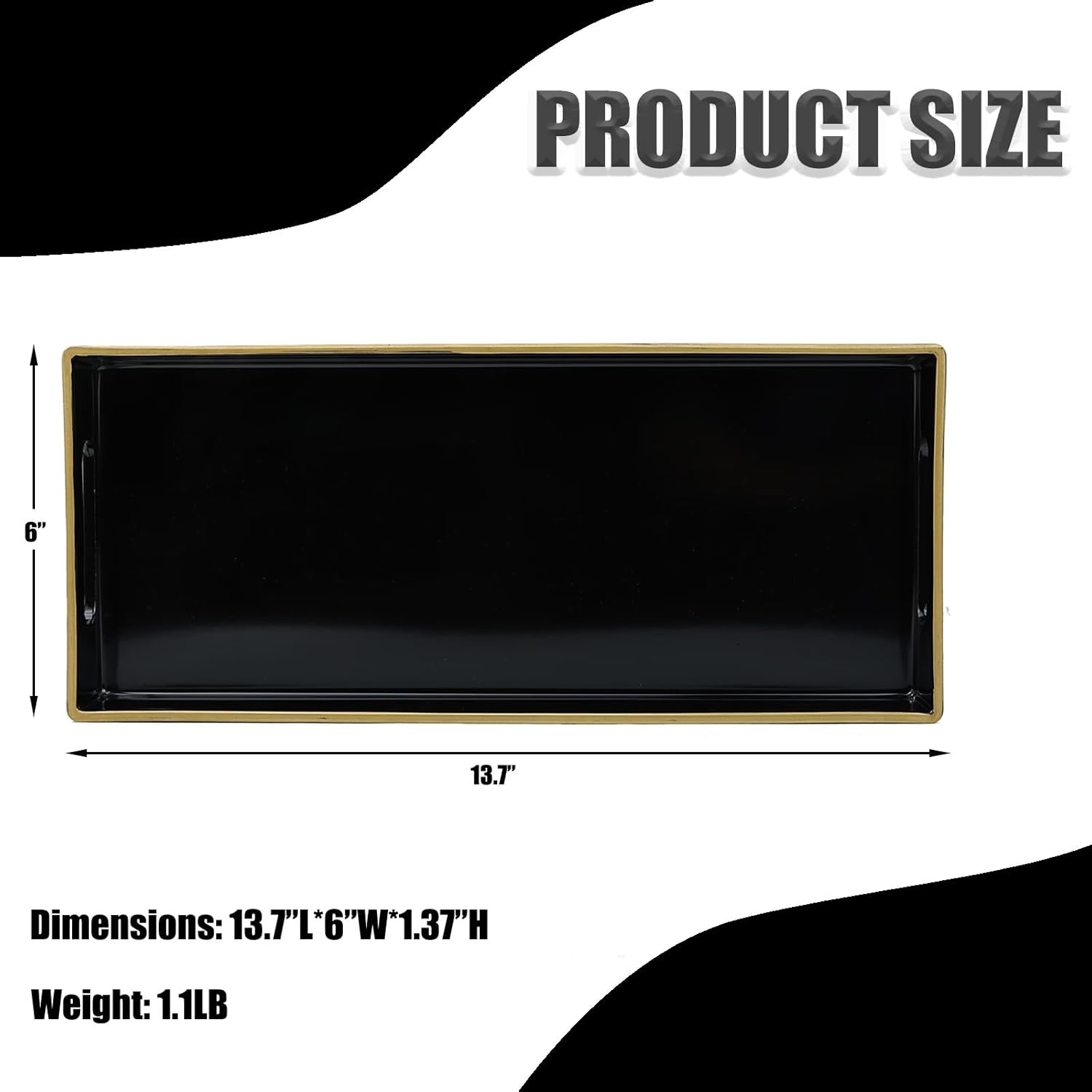 - Save Space: This vanity tray size with 13.7"x 5.9" x 1.37" and may be conveniently placed on the toilet tank, bathroom, vanity countertop, or bedside table due to its small size. Gather jewelry, candles, rings, earrings and place on the tray and keeps your table clean and tidy.