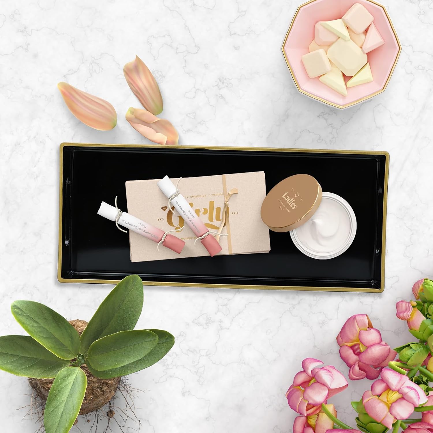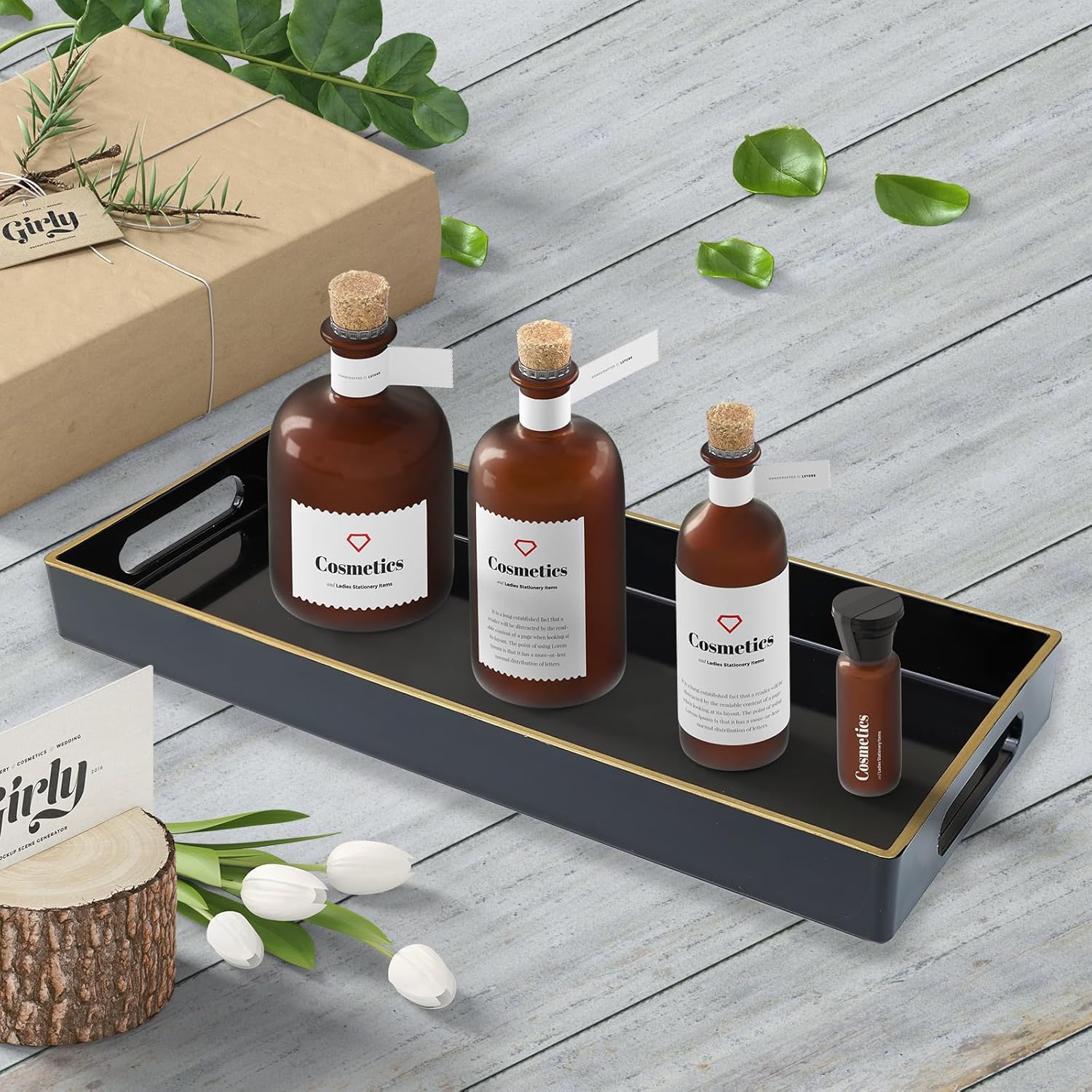 Black Vanity Tray with Handles, Decorative Tray Desktop Storage Organizer for Bathroom, Living Room, 5.9"*13.7"