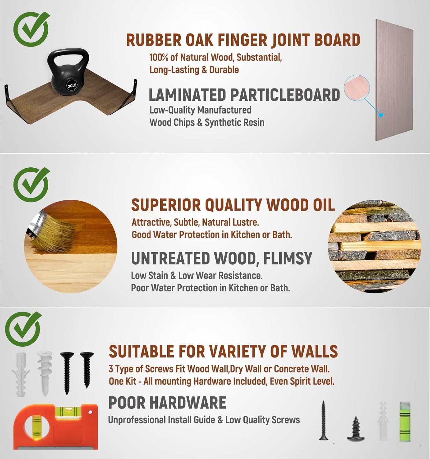 - All mounting hardware is included. Shelf brackets can be installation 2 ways. Brackets under the shelves or turned the other way is ok. The front 2 corners on each board use a curve design to inject some fresh, modern vibes into your space…we don’t cut corners or take shortcuts.
