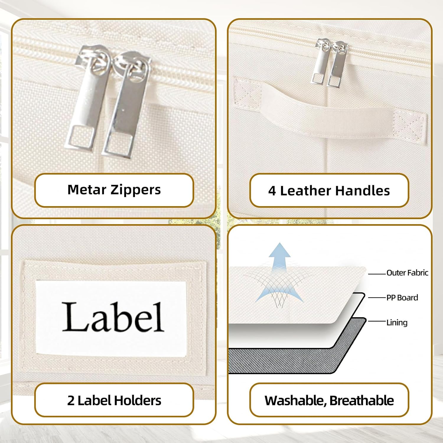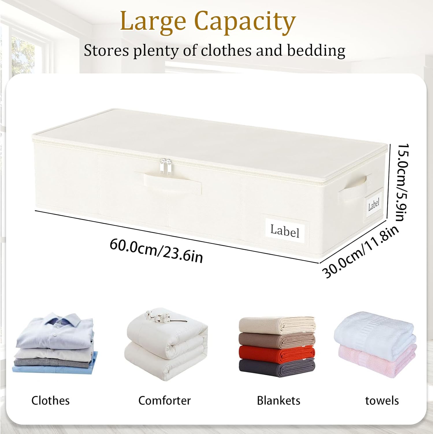 Yawinhe Underbed Bags, Storage Containers Bags with Lid, Foldable Blanket Bins, with Sturdy Zipper und Label Holders, for Clothing, 23.6''Lx11.8''Wx6''H, 2 Pack, Beige