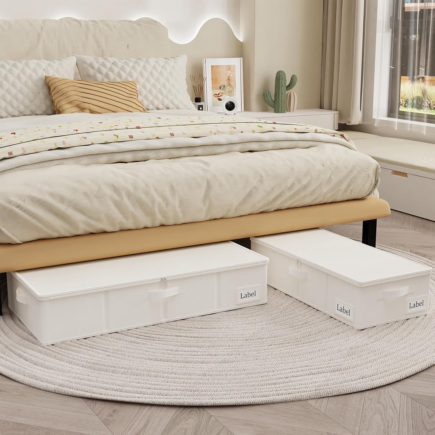 Yawinhe Underbed Bags, Storage Containers Bags with Lid, Foldable Blanket Bins, with Sturdy Zipper und Label Holders, for Clothing, 23.6''Lx11.8''Wx6''H, 4 Pack, Beige