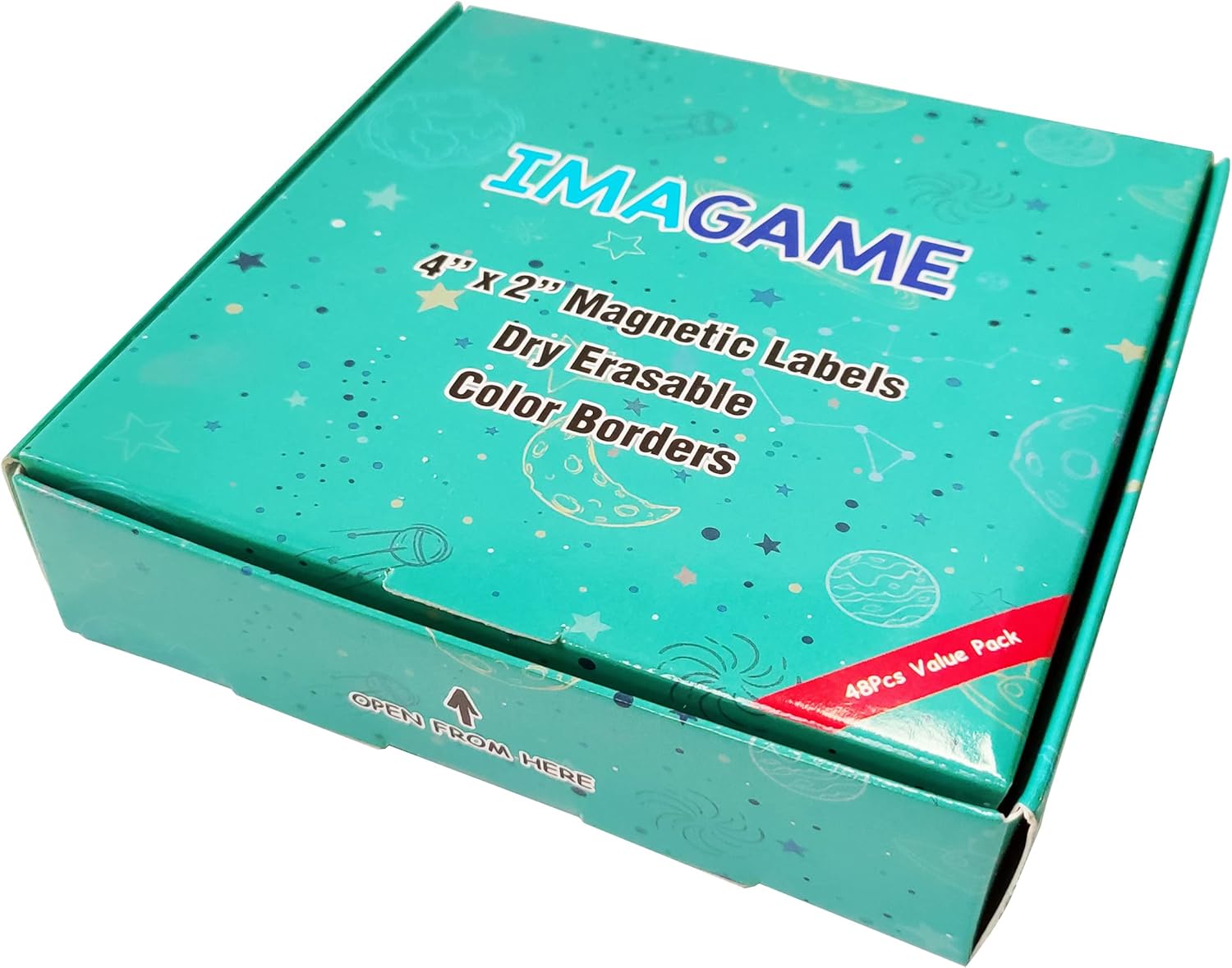 - PACKAGE DETAILS: Each set comes with 48 magnets in the following color borders: Red, Blue, Orange, Yellow, Pink, and Green. Measuring 2 x 4 inches, these dry erase magnetic labels are an essential labeling resource for any household.