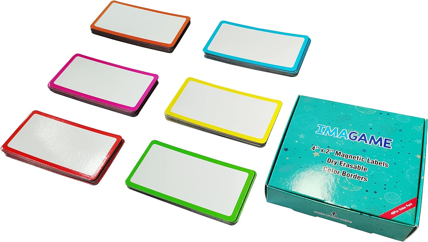 48 Pack Magnetic Dry Erase Labels - Magnetic Blank Cards with Color Borders, Reusable Name Tags - Dry Erase Labels for Home, Office, Classroom - 2 x 4 Inches