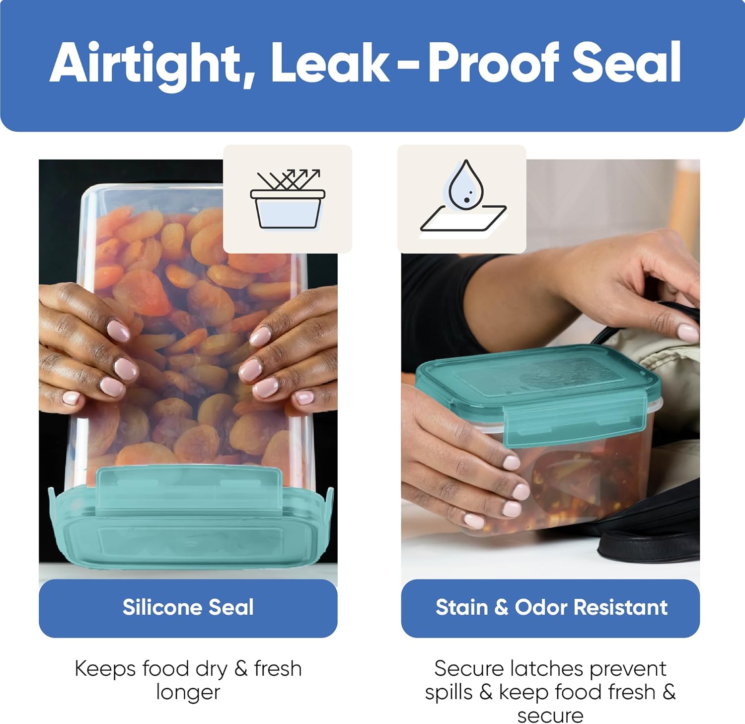 - Space-Saving Design - Maximize your storage space with our highly stackable translucent teal containers. They fit seamlessly in your refrigerator, cupboards, and kitchen counters, helping you maintain an organized and clutter-free environment.