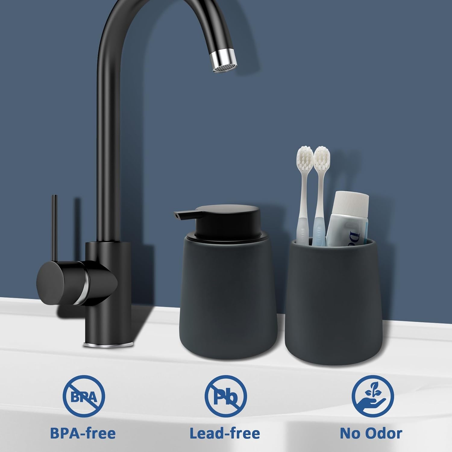 Soap Dispenser Ceramic with Easy-to-Press Pump Hand Lotion Liquid Dispenser for Shampoo Bathroom Kitchen 12 oz Grey
