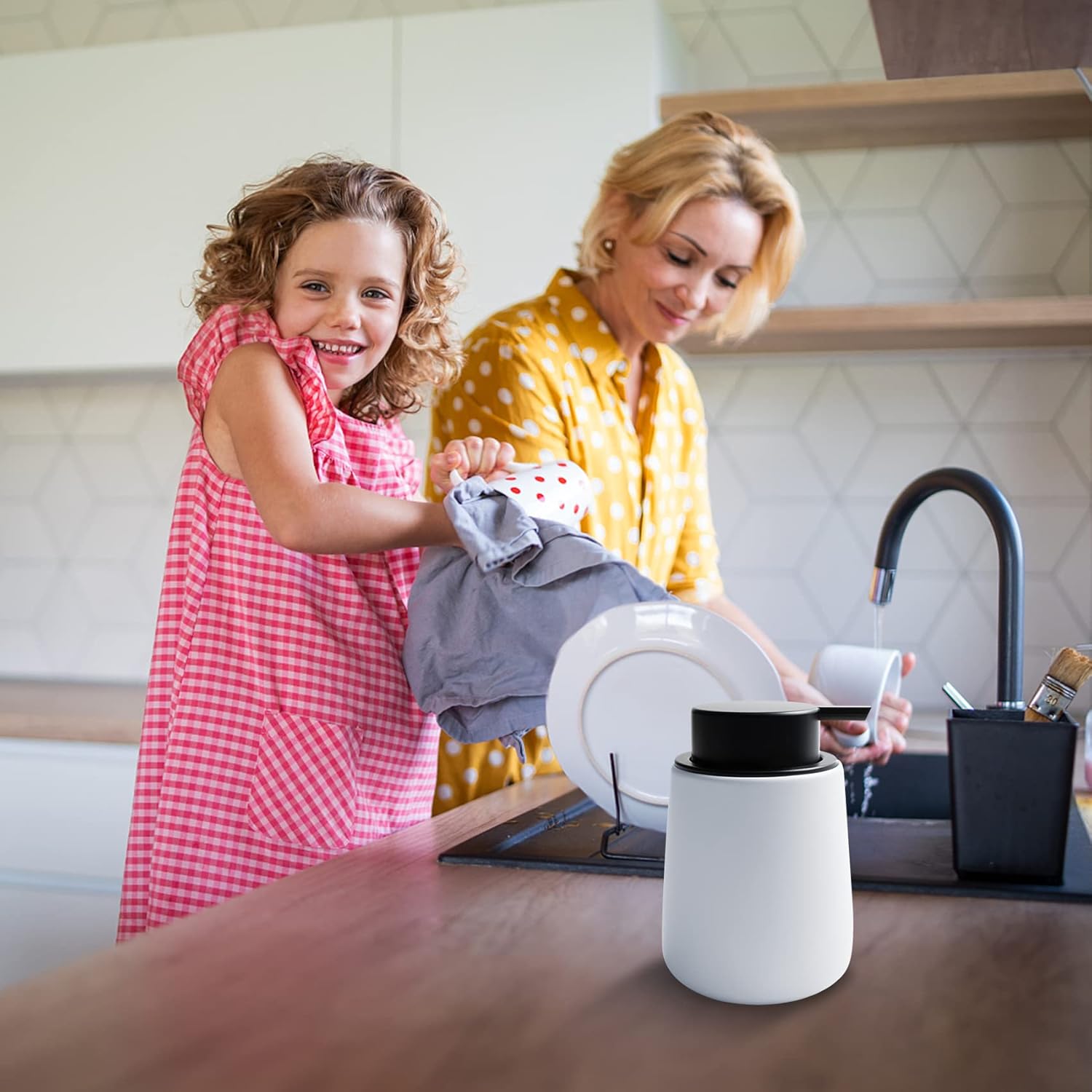 - Easy-to-Press - The Ceramic Hand Soap Dispenser uses a large area press pump made of premium plastic, we can easily squeeze out the liquid, the nozzle down is not easy to leave excess soap.