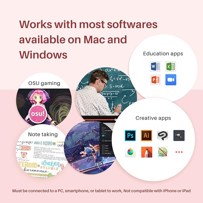 - [Multi-OS Compatibility]: Inspiroy 2 digital drawing tablet is compatible with Mac (MacOS 10.12 or later), PC (Windows 7 or later), Linux(Ubuntu) and certain Android devices (OS version 6.0 or later).