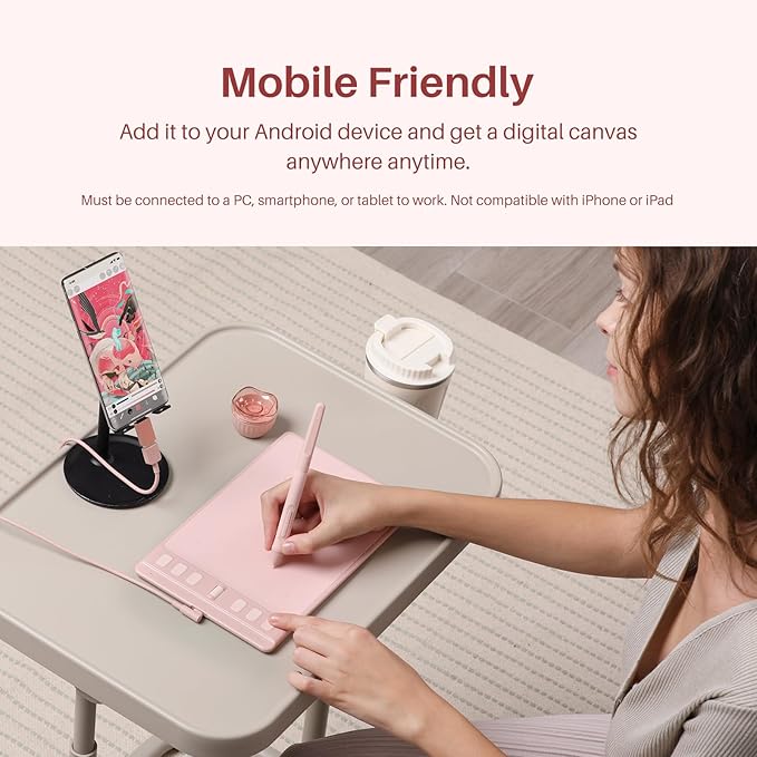 - [Mobile Friendly]: Enjoy creating on your Inspiroy 2 graphics drawing tablet and see your drawings and paintings come to life on your Android smartphone or tablet (OS version 6.0 or later). It is also available for left-handed user.