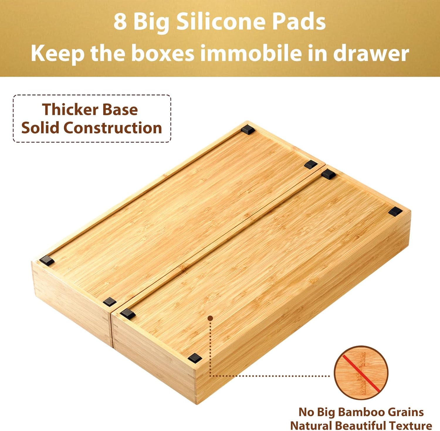Umilife Bamboo Kitchen Utensils Organizer, Extra Long High Silverware Drawer Holder, Flatware Cutlery Storage Box, Multi-Use Drawer Divider in Office, Bathroom, Pantry - 17"x6"x2.5" (Set of 2)