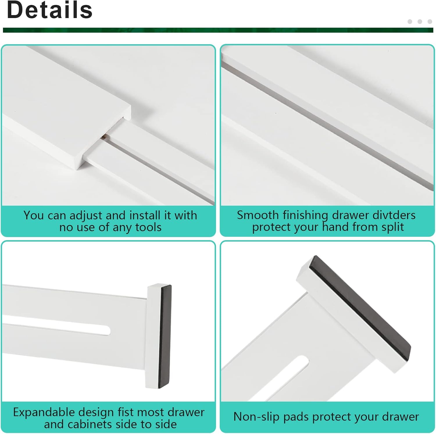 - Quick Installation: Kitchen drawer divider have built-in springs for safe and stable placement; easily adjustable length to meet your specific needs; foam pads on both ends protect your drawers from damage without leaving any marks or residues
