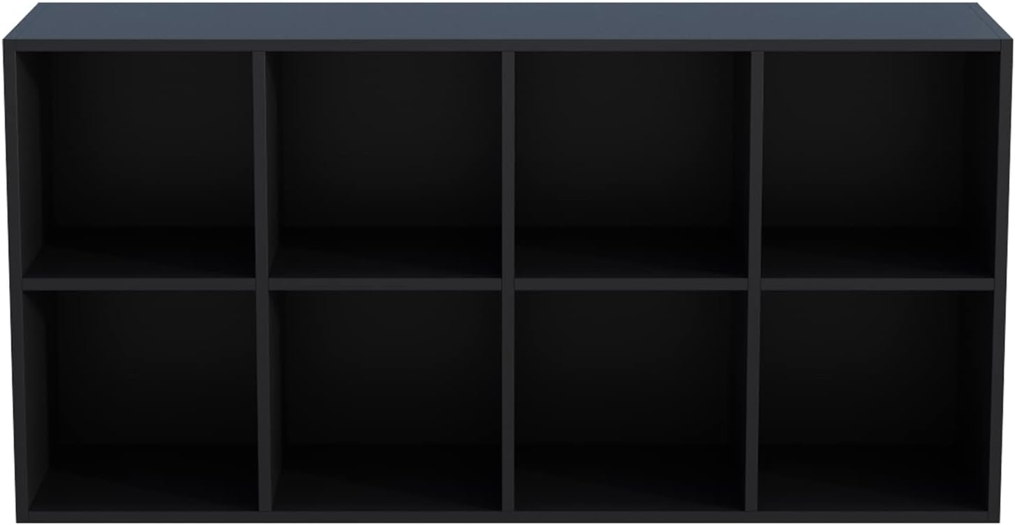 8-Cube Storage Shelf Bookcase - Wooden 4-Tier Floor Standing Open Bookshelf, Modern TV Stand up to 55 Inchs for Home and Office, Black