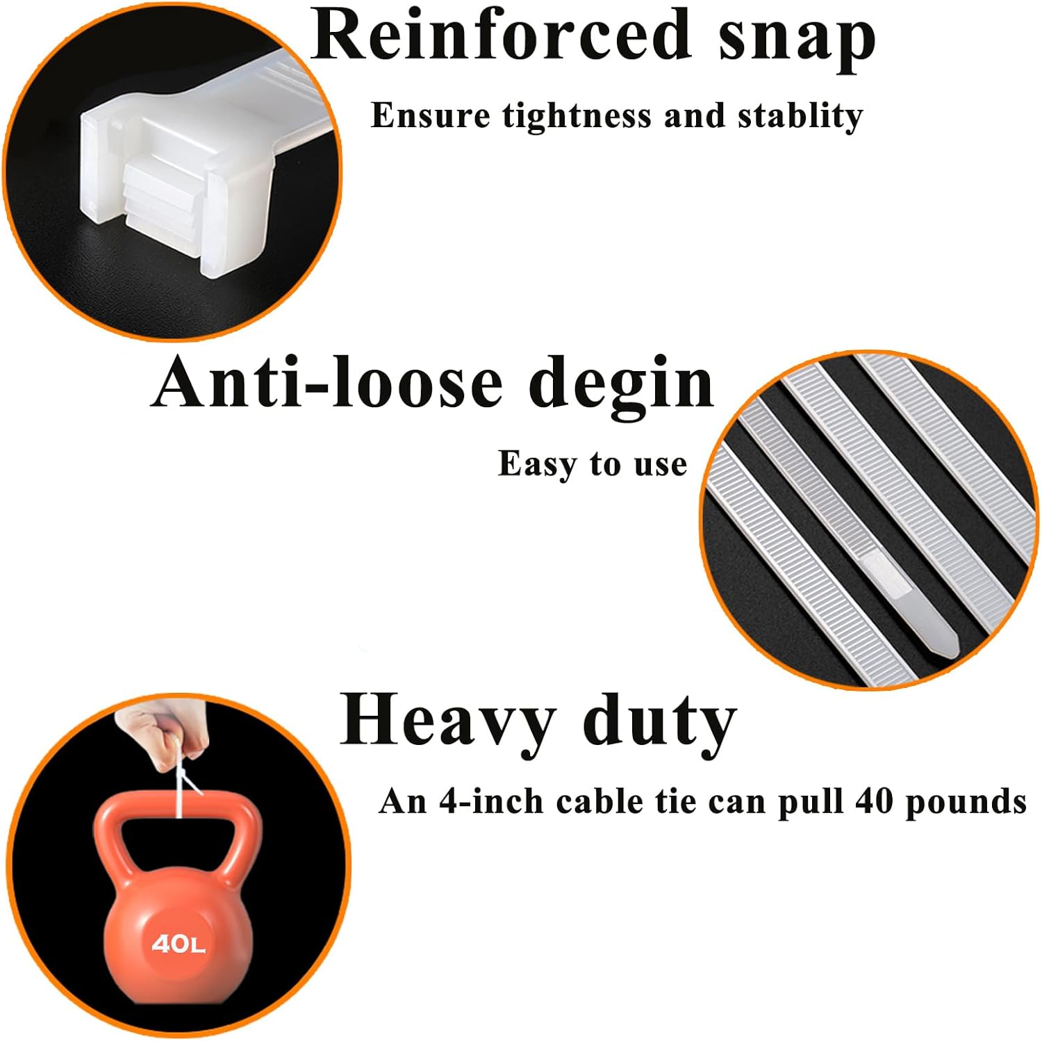 - 💡【Various Kinds】A dazzling array of nylon cable tie to meet your different needs, and this package contains 100Pcs 4inch White Cable Ties.