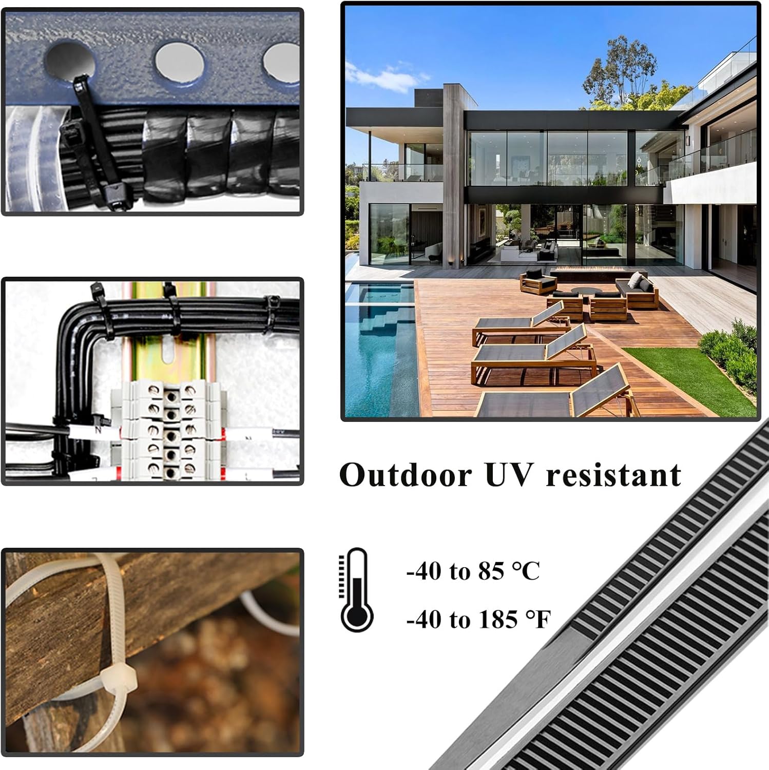- 💡【Premium Quality】Manufactured from Nylon polyamide 6/6 - resistant to external agents and UV exposure,Heavy duty zip ties are weather resistant and can withstand the harshest weather conditions (operating temperatures of -40°F to +185°F).
