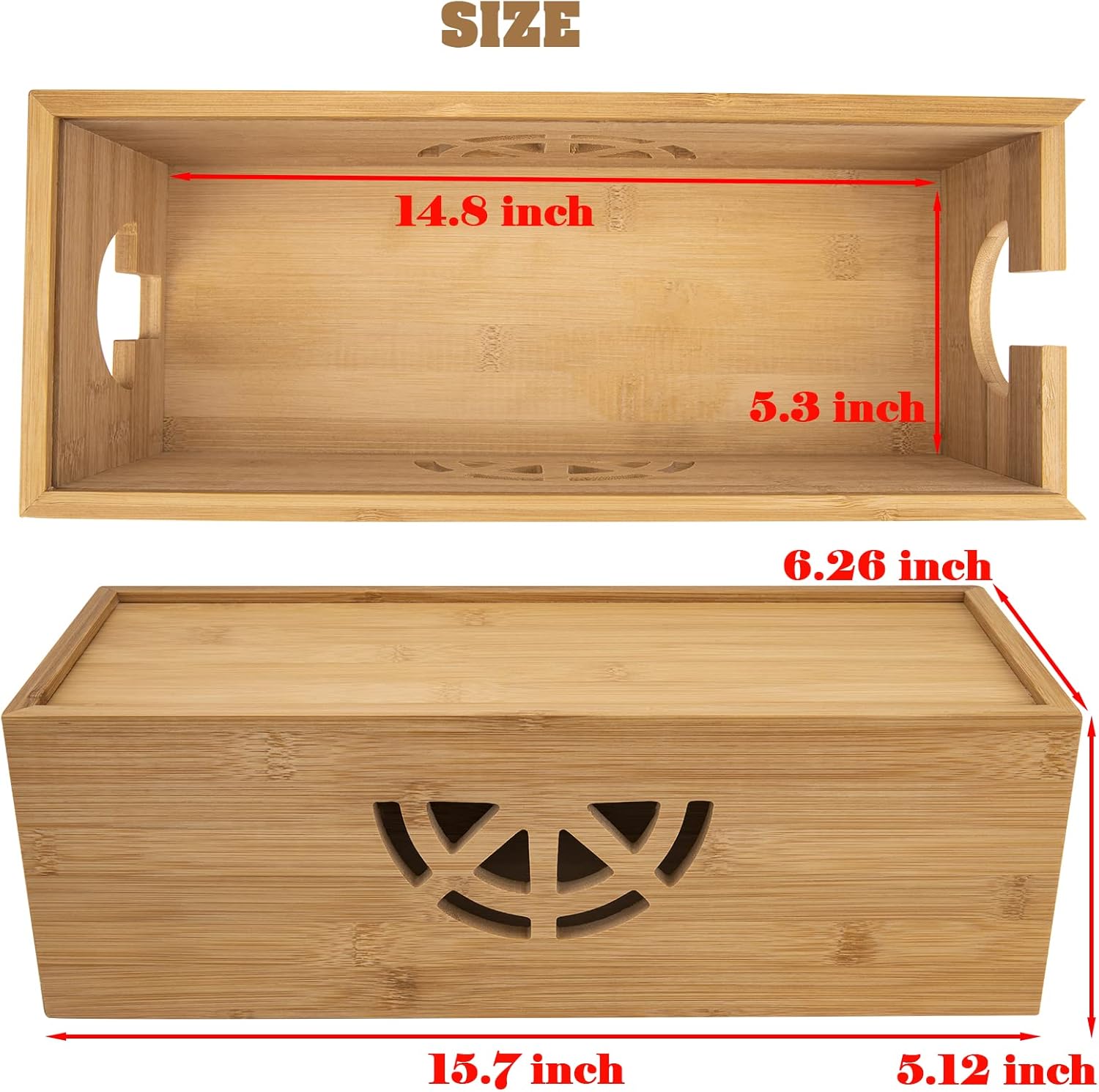 Cable Management Box,Cord Organizer Box,Bamboo Cable Organizer Box for fit Desk Computer USB Behind TV Home Hall Computer Power