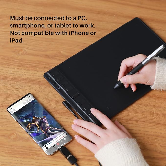 - Please note: The art tablet is not a standalone product and has no internal power source. It must be connected to a computer, laptop, or smartphone using the included cable to work.