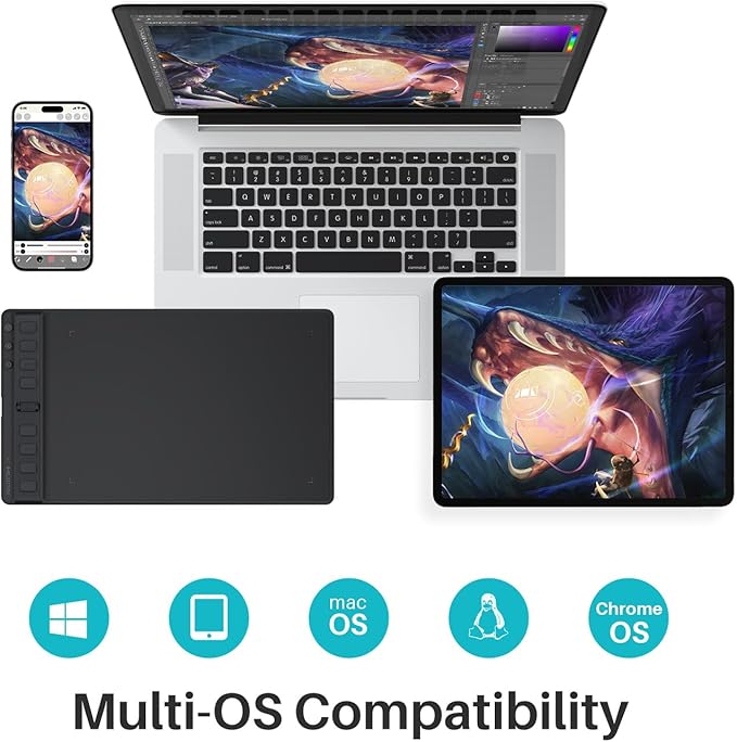 - Multi-OS Compatibility: Inspiroy 2 pen tablet is compatible with Mac (MacOS 10.12 or later), PC (Windows 7 or later), Linux(Ubuntu) and certain Android devices (OS version 6.0 or later).