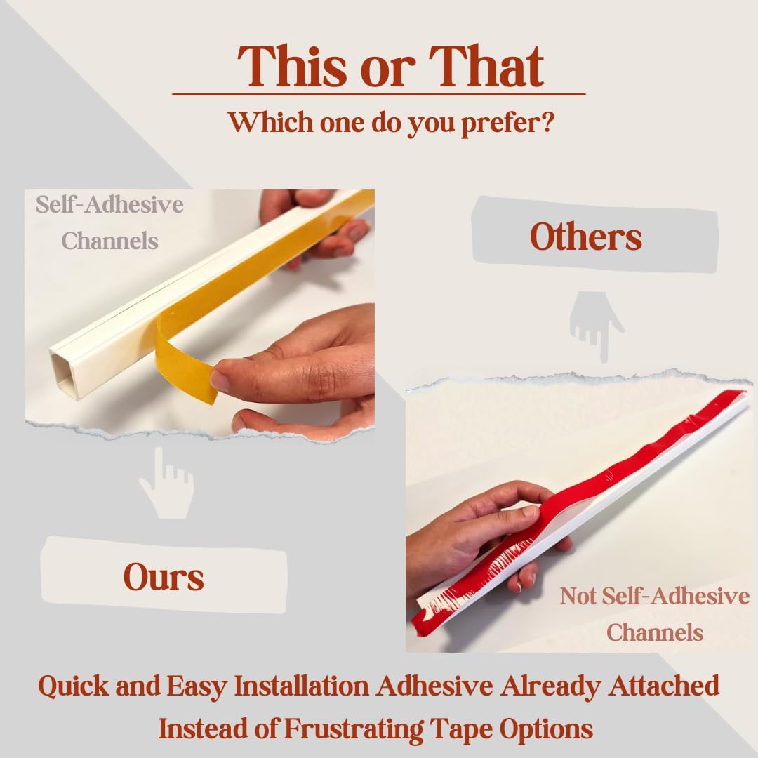 - Paintable, Cuttable, and Self-Adhesive Tape Cord Concealer : Evza cord cover wall comes with strong adhesive mounting tape on the backside. For a perfect match, you can paint the tv cable hider wall kit in any color. Together with it's easy to cut the wire mold raceway down to your desired length with a knife or hacksaw easily. Wire conduit is still the best solution to hide TV wire on walls!
