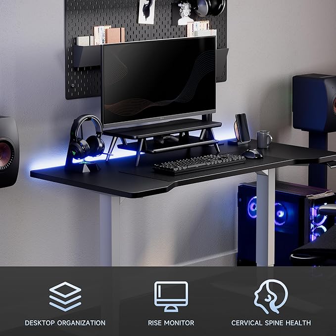 - 【2 Tier Desktop Organizer】At longest 23.6inch wide, It has a universal device holder slot and a high capacity compartments. You can easily store your office accessories & supplies under your monitor stand to keep your desktop tidy. Our monitor stand rise comes with cable management slots that can make your cord stay organized.