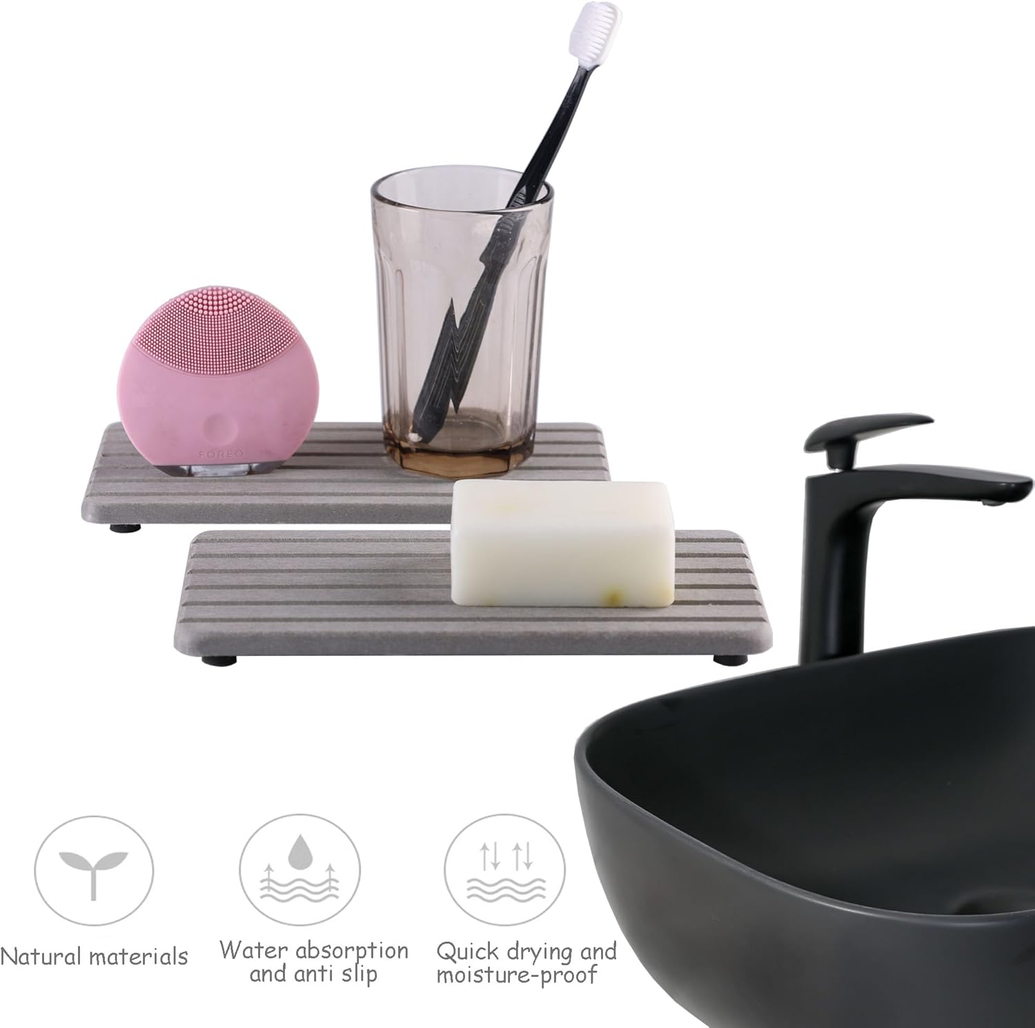 2 PCS Water Absorbent Diatomite Coasters Rectangle, Grooved Design, Water Absorbing Stone Used for Hand Soaps & Plants & toiletries in The Modern Home
