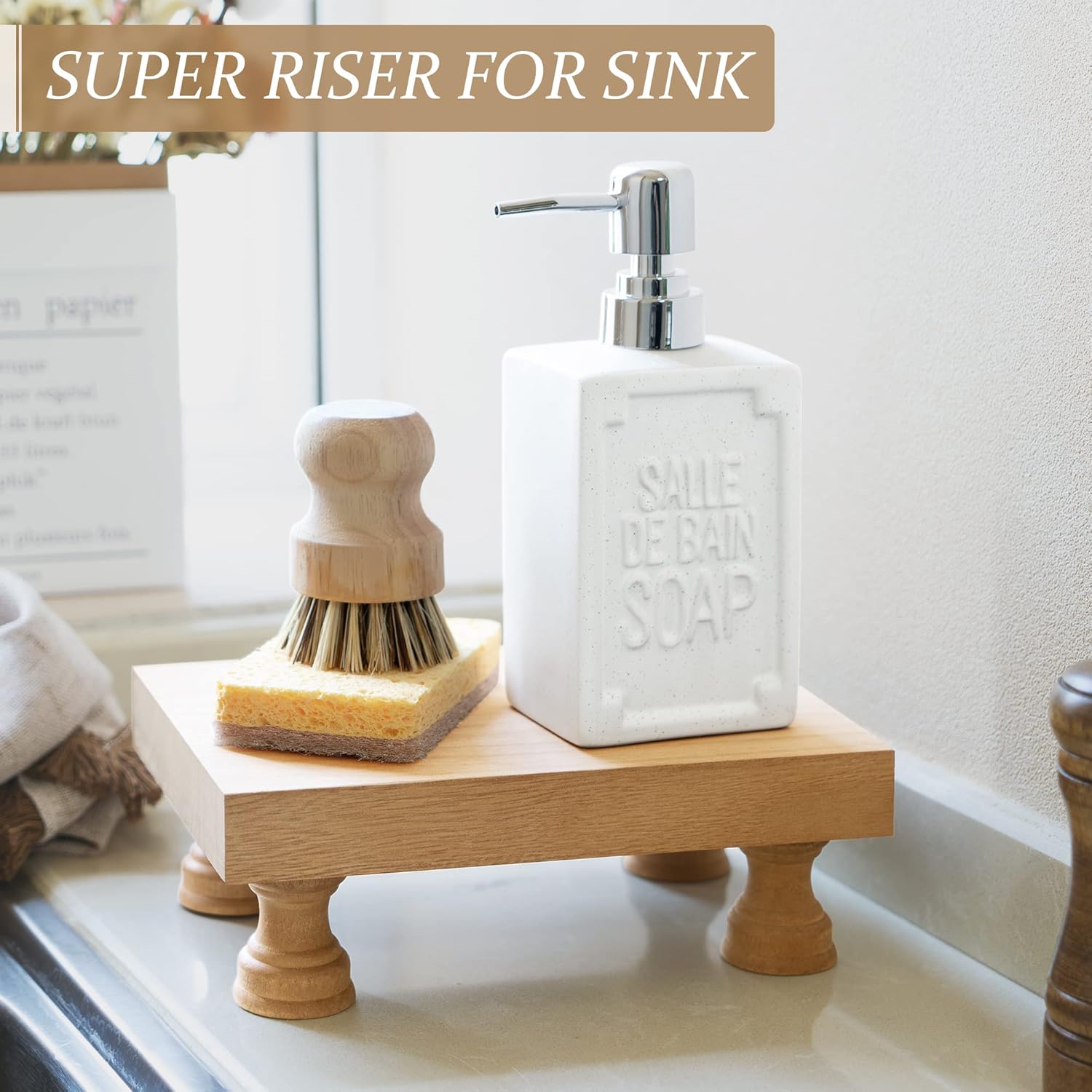 EOSAHR Modern Farmhouse Wood Riser for Display : Decorative Pedestal Stand for Home & Kitchen Decor and Retro Soap Stand for Sink - Rustic Bathroom Counter Tray and Countertop Organizer (Light Brown)
