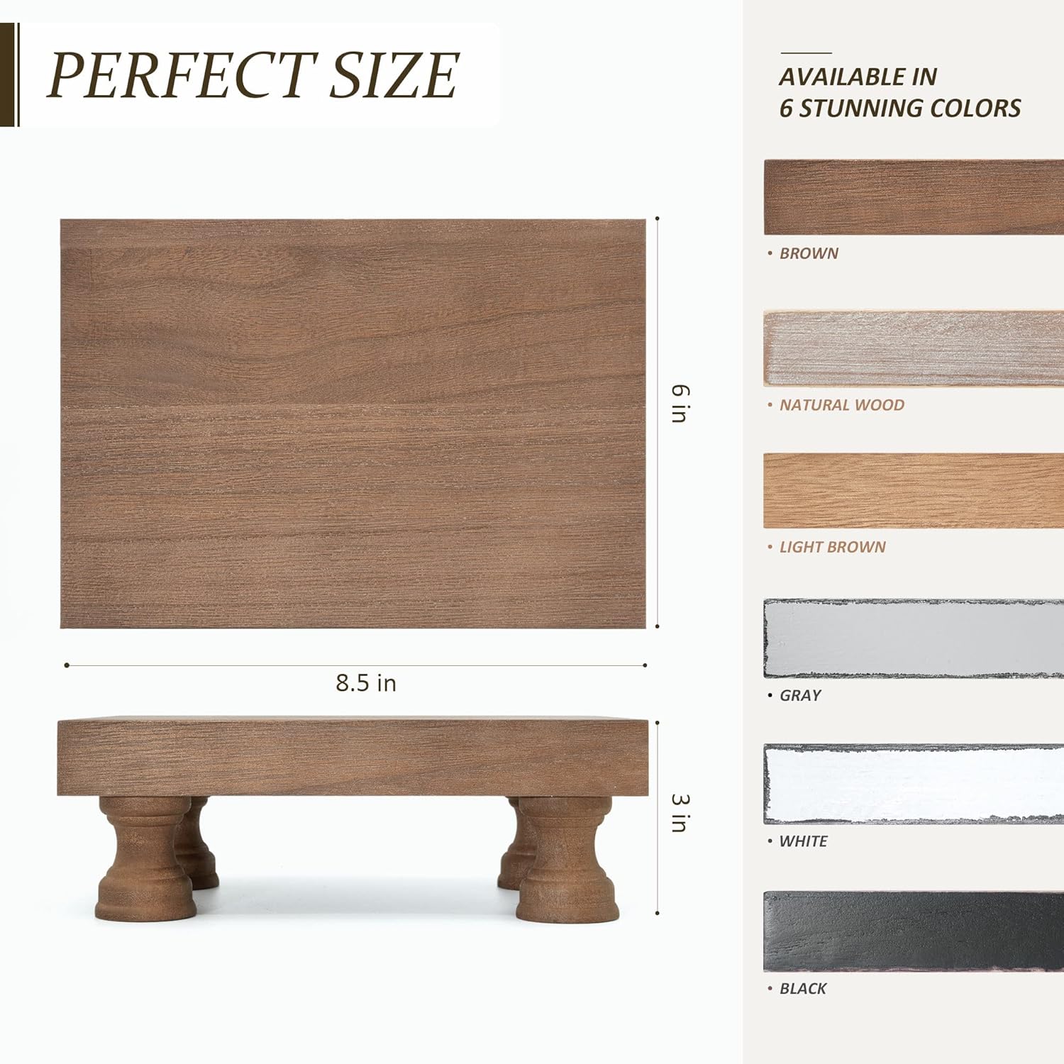- [CHOOSE YOUR WOODEN RISER IN A CHIC COLOR] The EOSAHR bathroom counter tray comes in a range of modern colors - Black & White, Black, Brown, Light Brown, Gray and Natural Wood. So, you won't have trouble finding the one that matches your room decor.