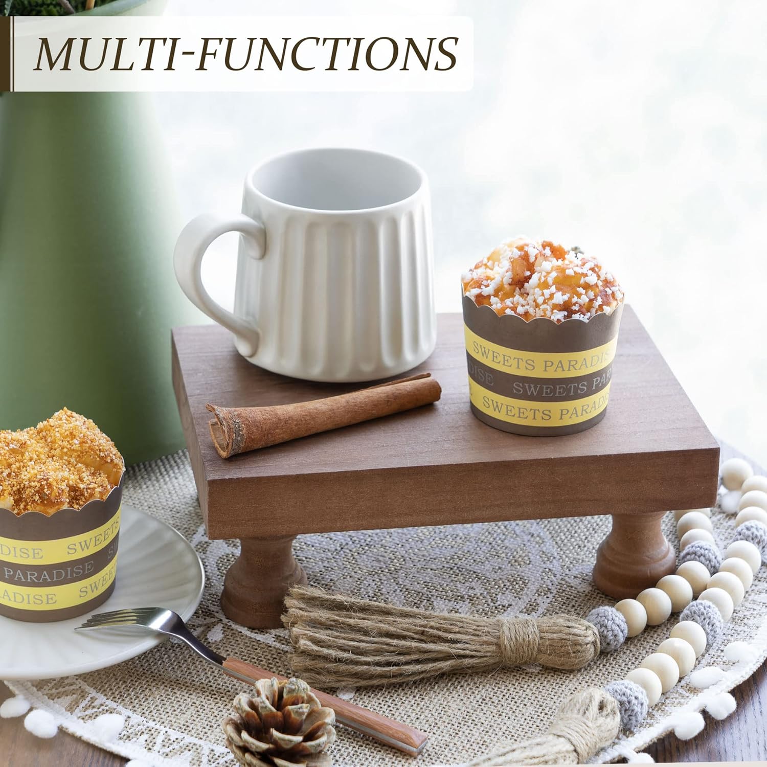 - [USE THIS WOODEN PEDESTAL STAND IN DIFFERENT WAYS] With painted surfaces, our pedestal tray makes a great kitchen or bathroom counter tray. Use it as a kitchen soap tray, sink riser, candle tray, cupcake stand or plant pedestal.