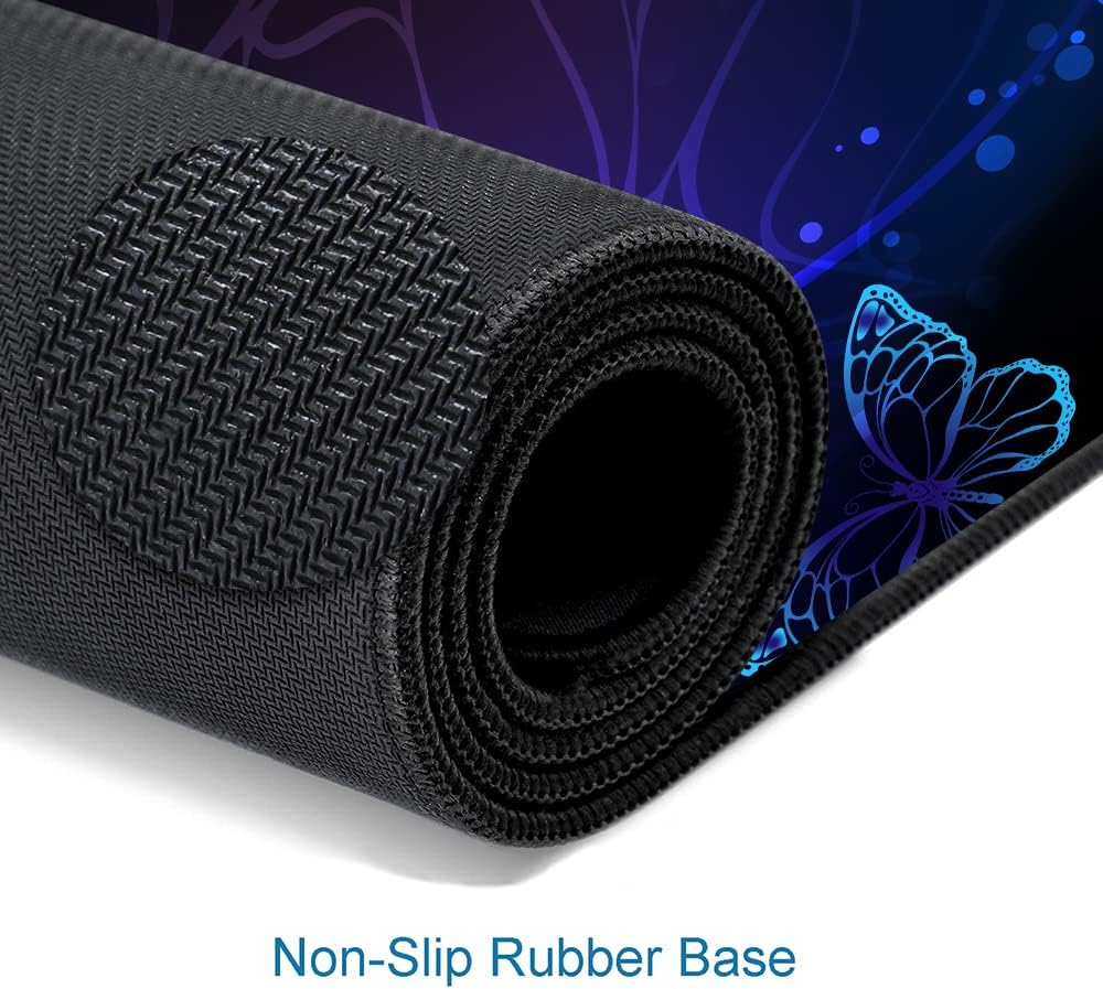 Gaming Mouse Pad, Large Mouse Pads for Women, Non-Slip Rubber Base Mousepad, Keyboard Mouse Mat, Desk Pad with Stitched Edges, 31.5x11.8inch, Purple Butterfly
