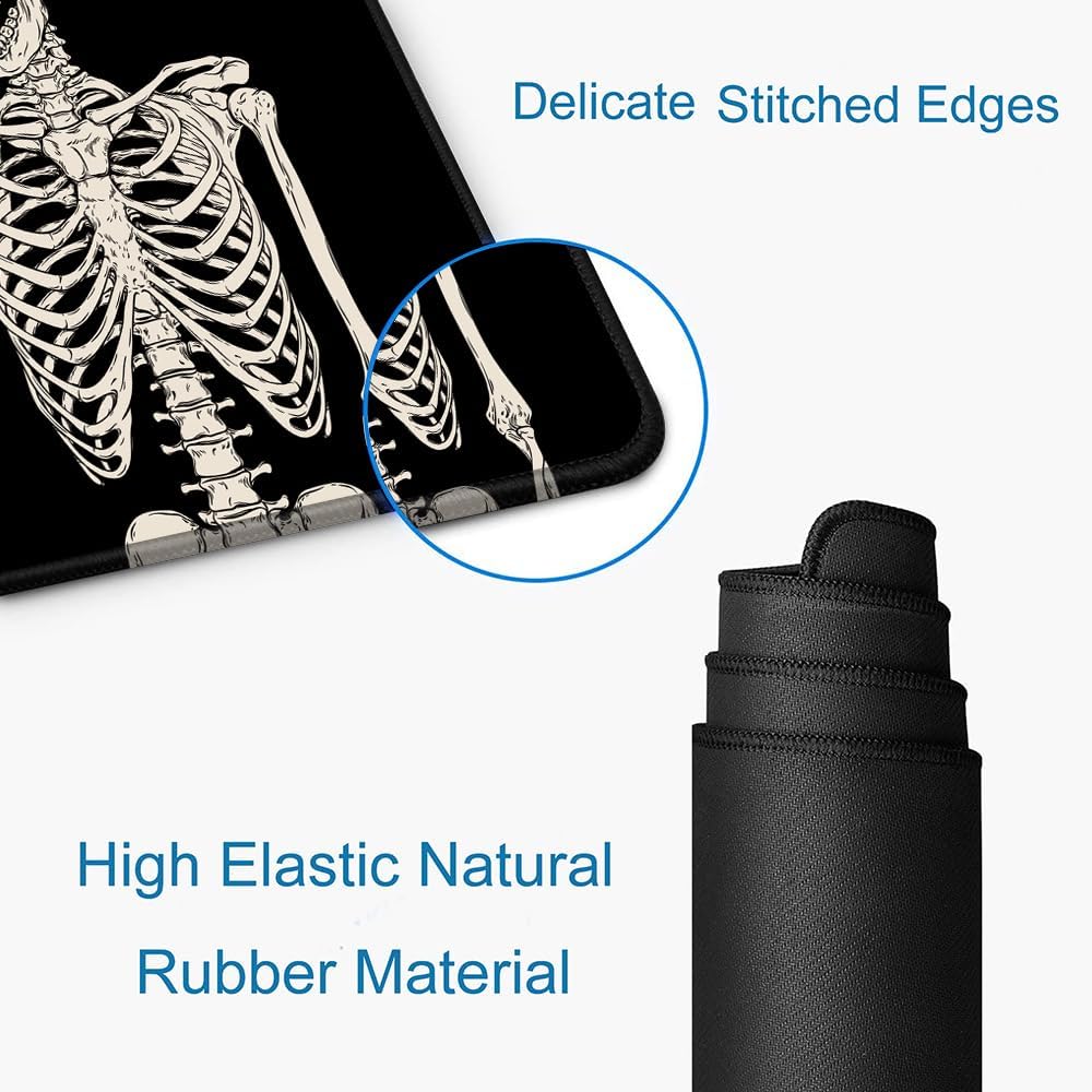 Gaming Mouse Pad, Large Mouse Pads for Desk, Non-Slip Rubber Base Mousepad, Keyboard Mouse Mat, Desk Pad with Stitched Edges, 31.5x11.8 inch Black Human Skeleton