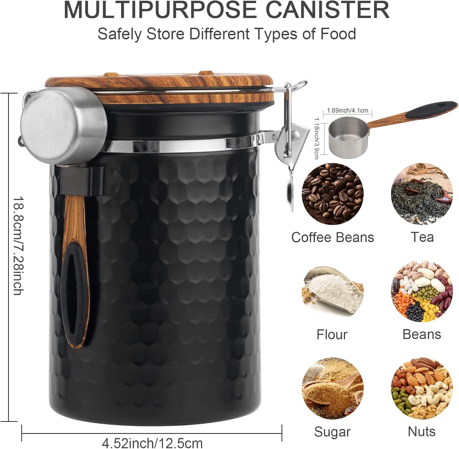 - 【Long last Freshness】: Our coffee canisters use professional food-grade materials and 304 stainless steel with a strong stainless steel buckle. It keeps quality coffee beans or ground coffee fresh for a long time, allowing you to enjoy every bite of coffee you like best.