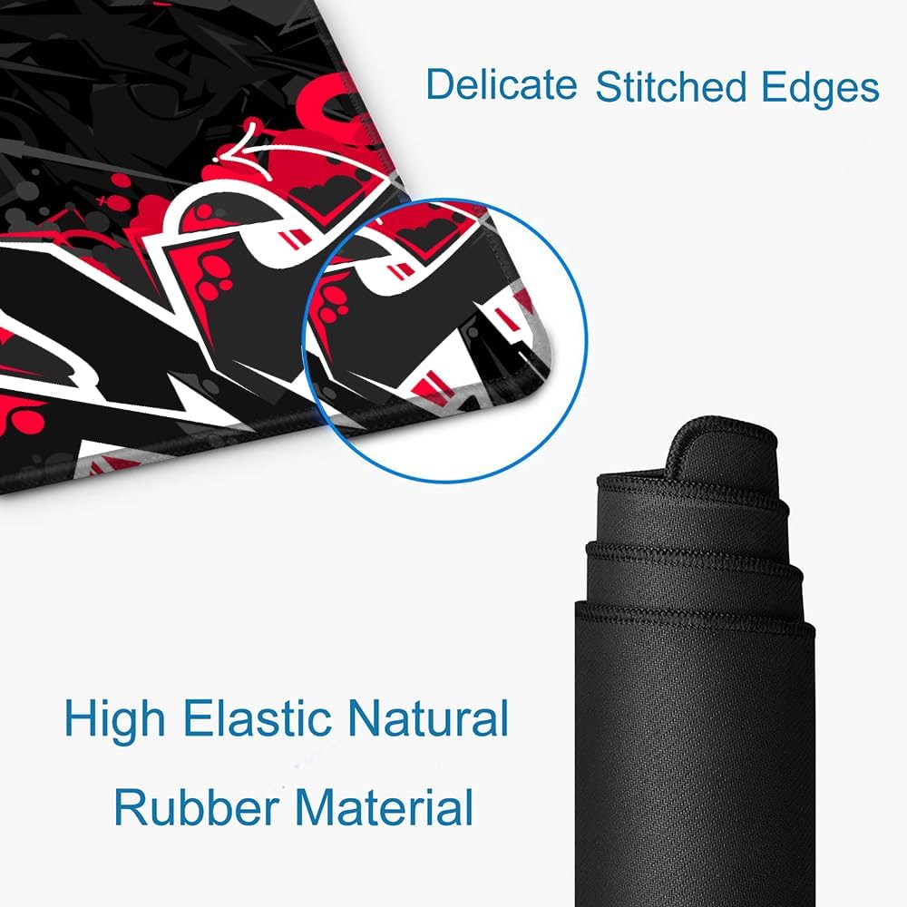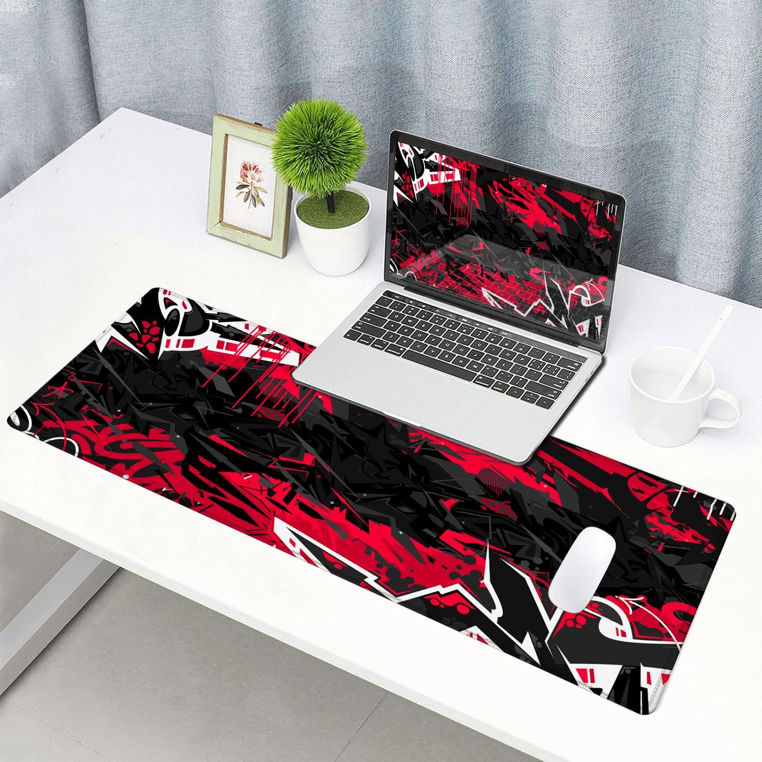Mouse Pad Gaming, Large XXL Mouse Pads, Non-Slip Rubber Base Mousepad, Keyboard Mouse Mat Desk Pad with Stitched Edges, 31.5x11.8 inch Black Red
