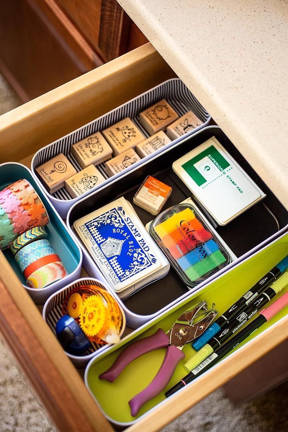 - BOLD DESIGN: Our trays have colorful interiors and bold patterns allowing you to color code your items while adding a stylish pop of color to your drawers, pantry, vanity, and office desk tops