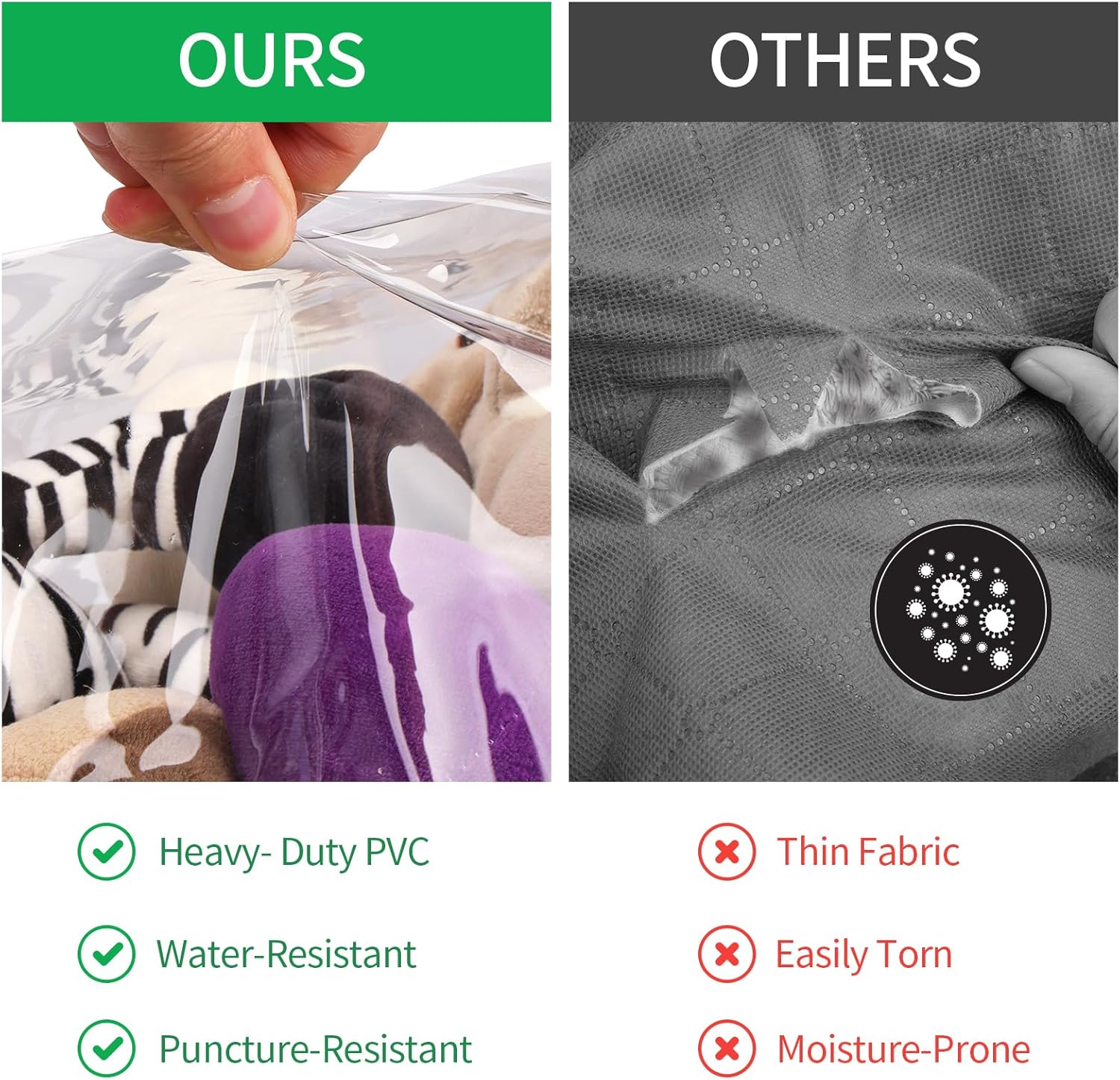 - Transparency Design: The storage bags are made of waterproof and puncture-resistant PVC fabric, being sturdy and highly transparent. It may take a few hours to dissipate the smell of PVC, after that you can enjoy the clearly visible design.